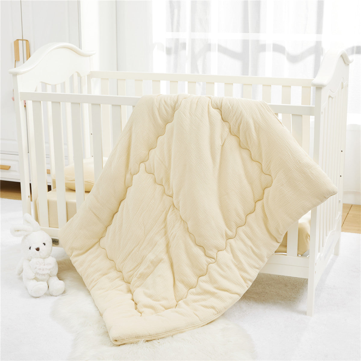 Home » Shop » 100% Cotton Muslin Baby Gear Includes Bib / Swaddling Blanket / Crib Sheet / Single Layer Quilt / Burp Cloth / Pillow / Washcloth