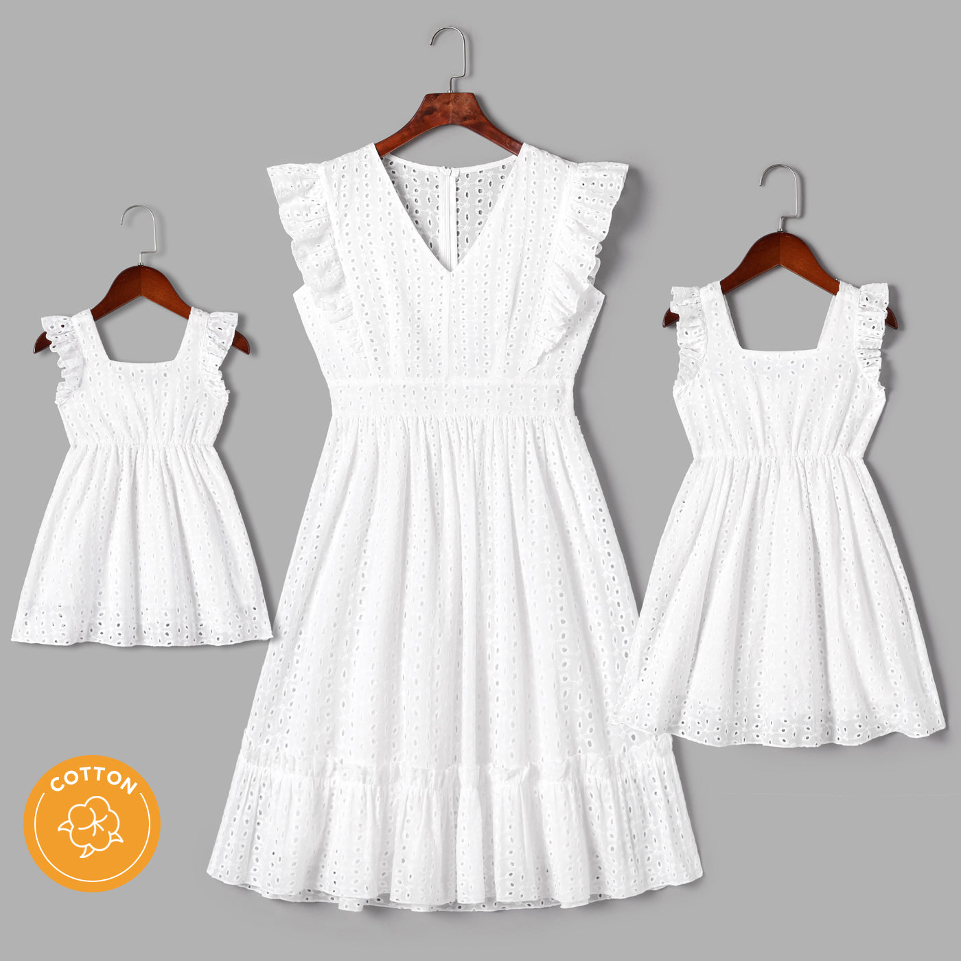 A stunning hollow-out floral-embroidered dress for mother and daughter. Perfect for casual summer outings.