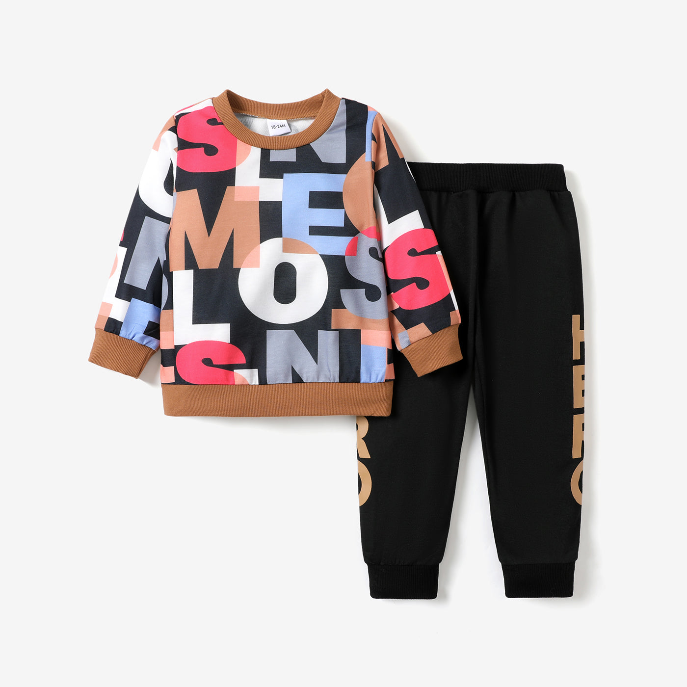 Cozy and stylish, this 2-piece toddler boy set features a letter print pullover sweatshirt and matching pants, making it perfect for any fashionable outfit.