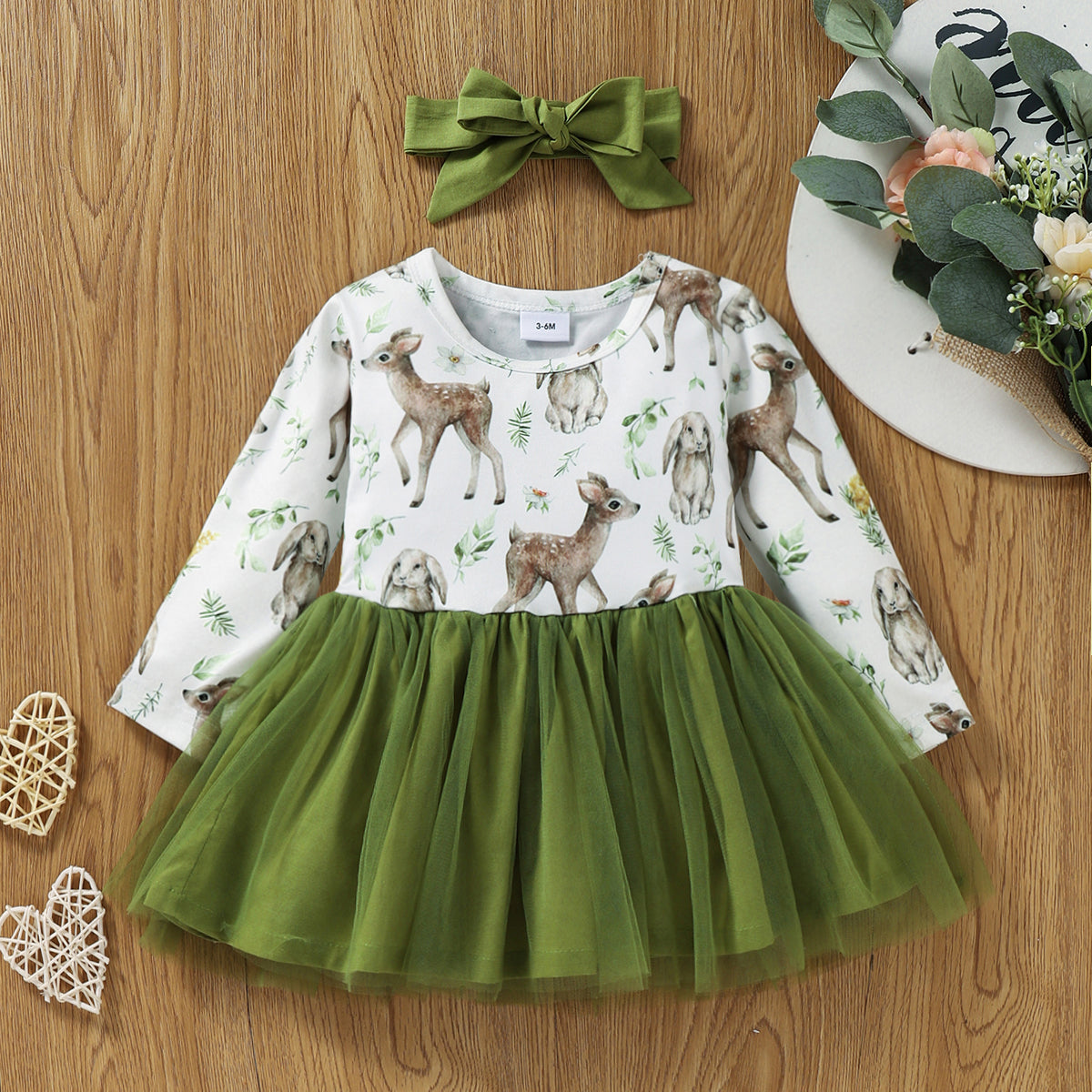 All-over animal print long-sleeve splicing mesh dress set with fabric stitching, suitable for fall and winter.