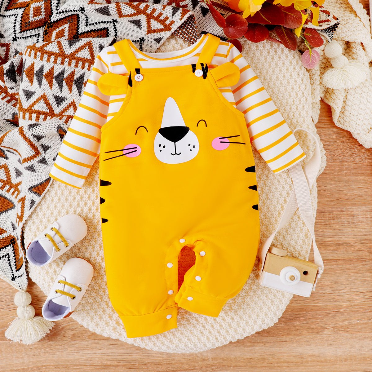 * Supplier: PatPat.”Additional Information:”Suitable for autumn and outdoor activities this set adds a playful touch to everyday outings. The colorful lion design makes sure your baby stands out in the crowd.