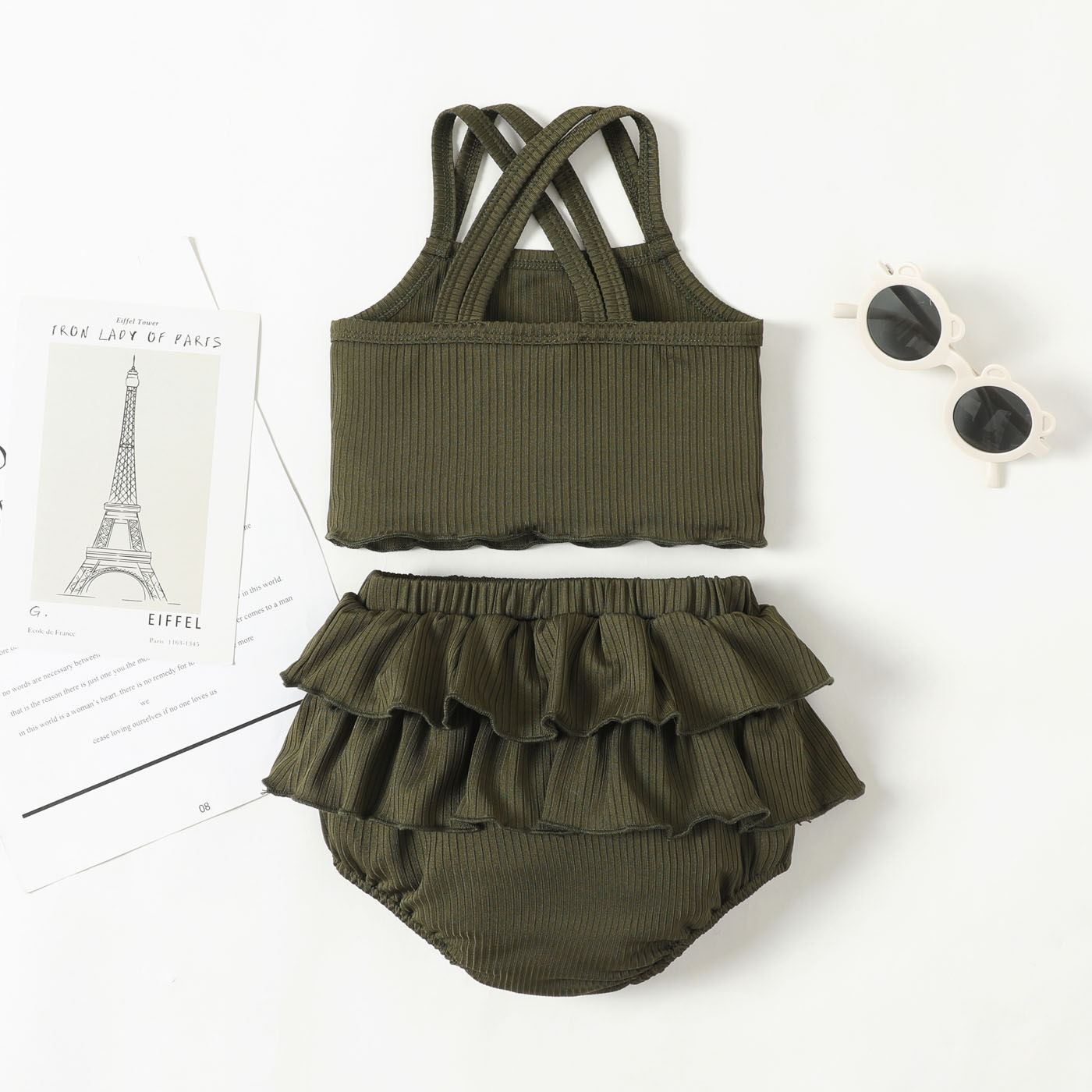 Home » Shop » 2pcs Baby Girl Solid Rib-knit Camisole and Ruffled Shorts Set