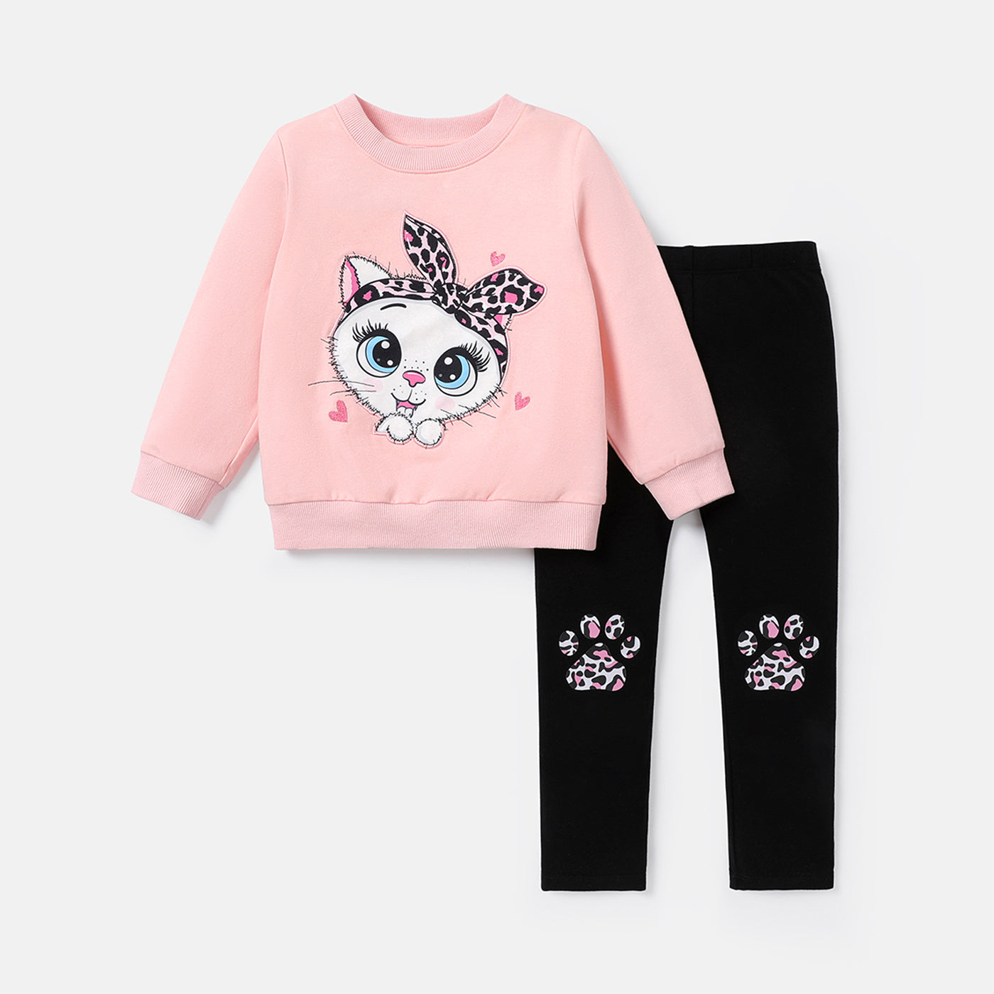Suitable for all seasons, your little one will look adorable and feel comfortable in this playful cat print set, perfect for any casual occasion. Featuring a childlike style design that adds an extra element of cuteness.