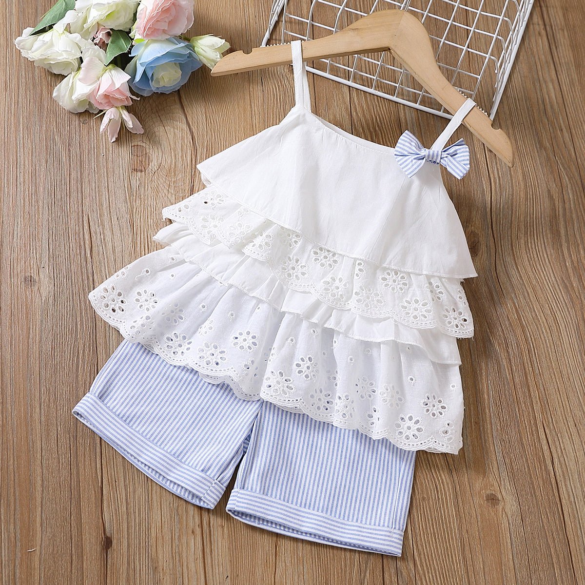 2pcs Toddler Girl Sweet 100% Cotton Bowknot Design Layered Camisole and Stripe Shorts Set