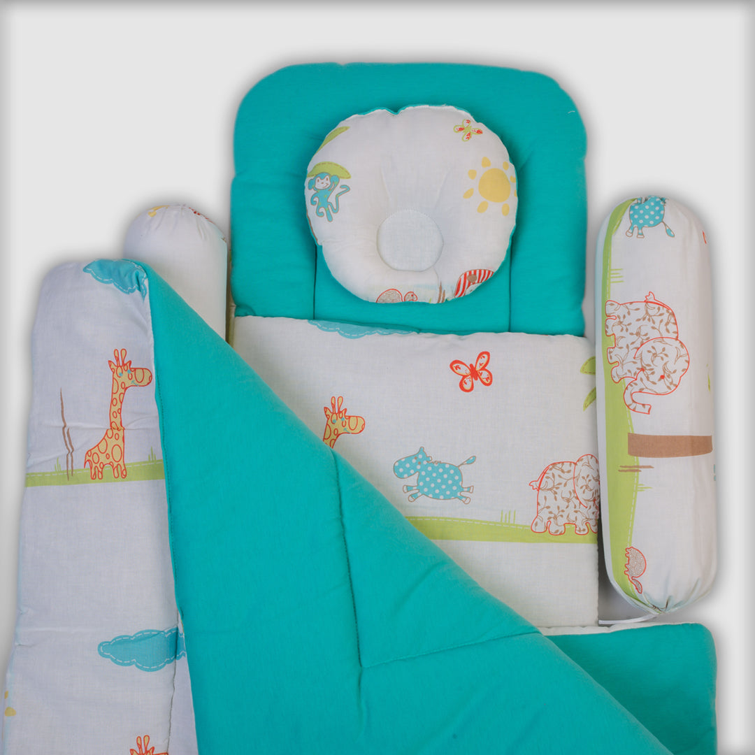 Elevate your nursery decor with our Baby Bedding Set – Teal with Giraffe Theme. Order now!