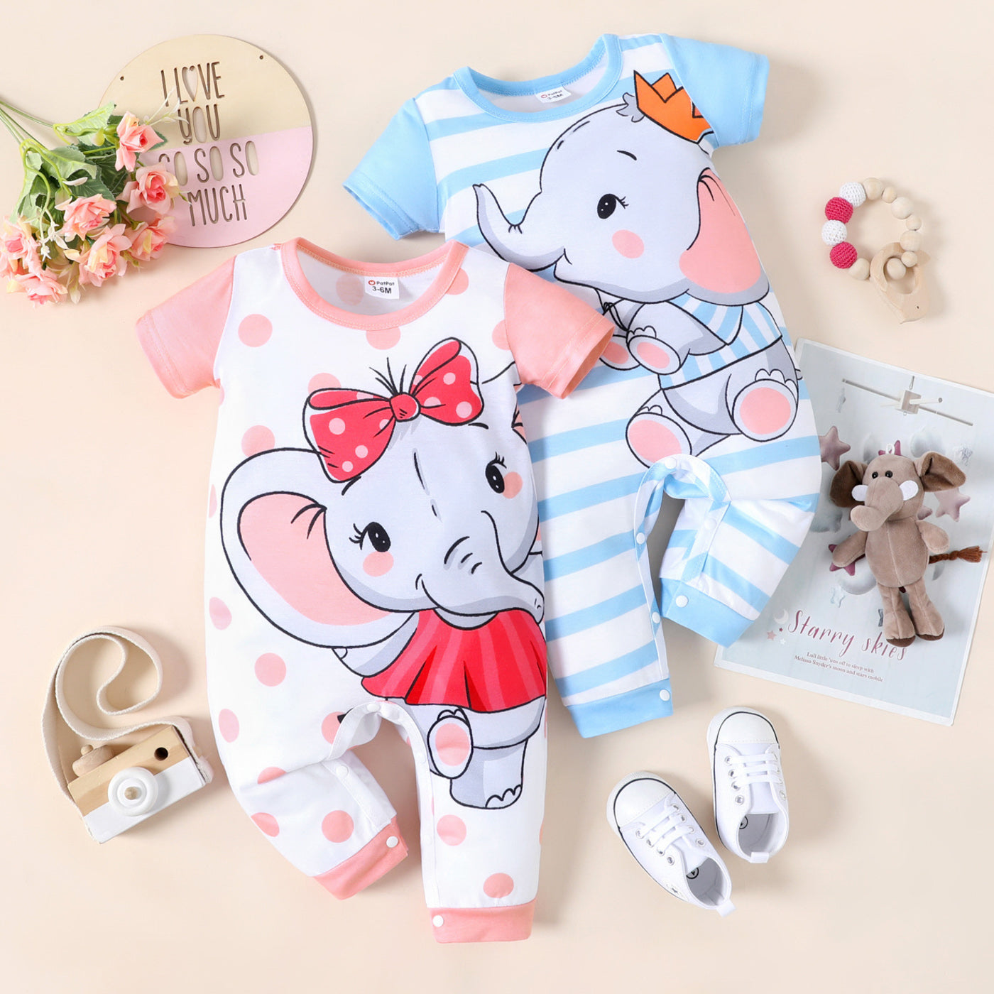 Home » Shop » Baby Boy/Girl Cartoon Elephant Print Short-sleeve Jumpsuit