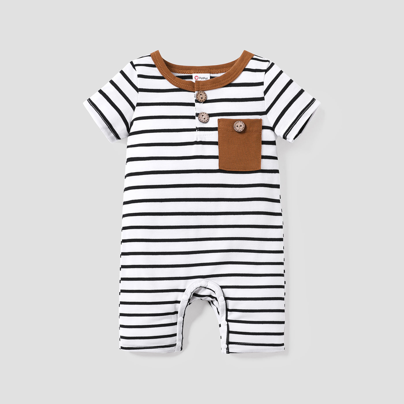 Comfortable and stylish, this baby boy striped button-up jumpsuit is perfect for summer days.