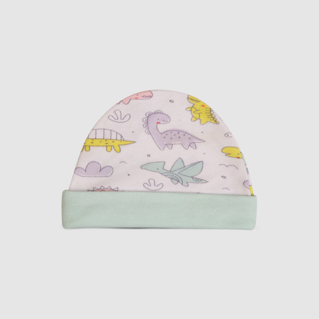 Introducing the Baby Cap Little Dino Pattern Adorable Cotton Comfortable Infant Accessory Variation 3, designed for your little adventurer! This charming pastel cap features delightful dinosaur prints to keep your baby stylish and cozy.