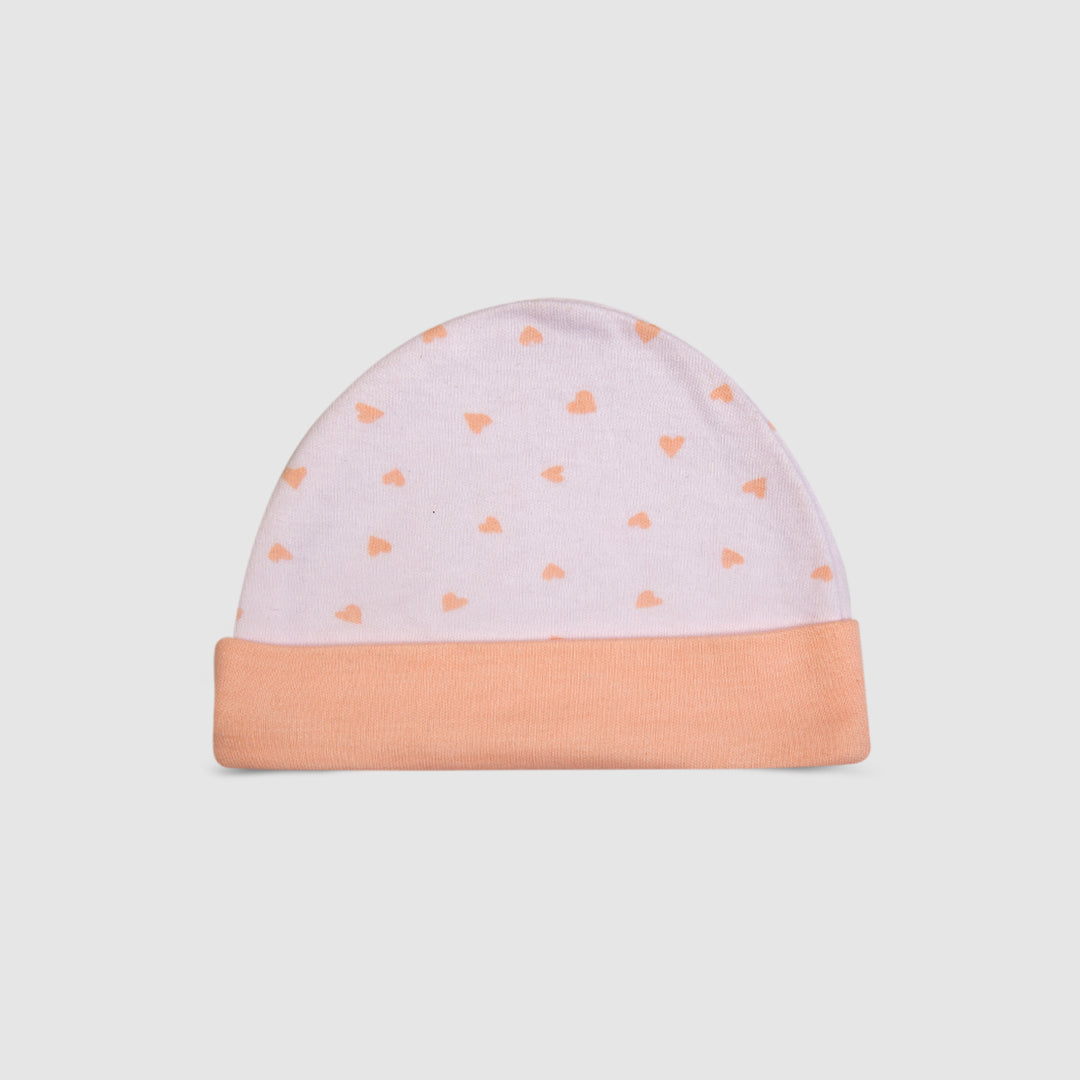 Introducing our Baby Cap Unique Design Soft Comfortable Cotton Infant Clothing Accessory Variation 11, the perfect blend of style and comfort for your little one. This adorable peach cap features scattered orange hearts, making it a charming addition to your baby’s wardrobe.