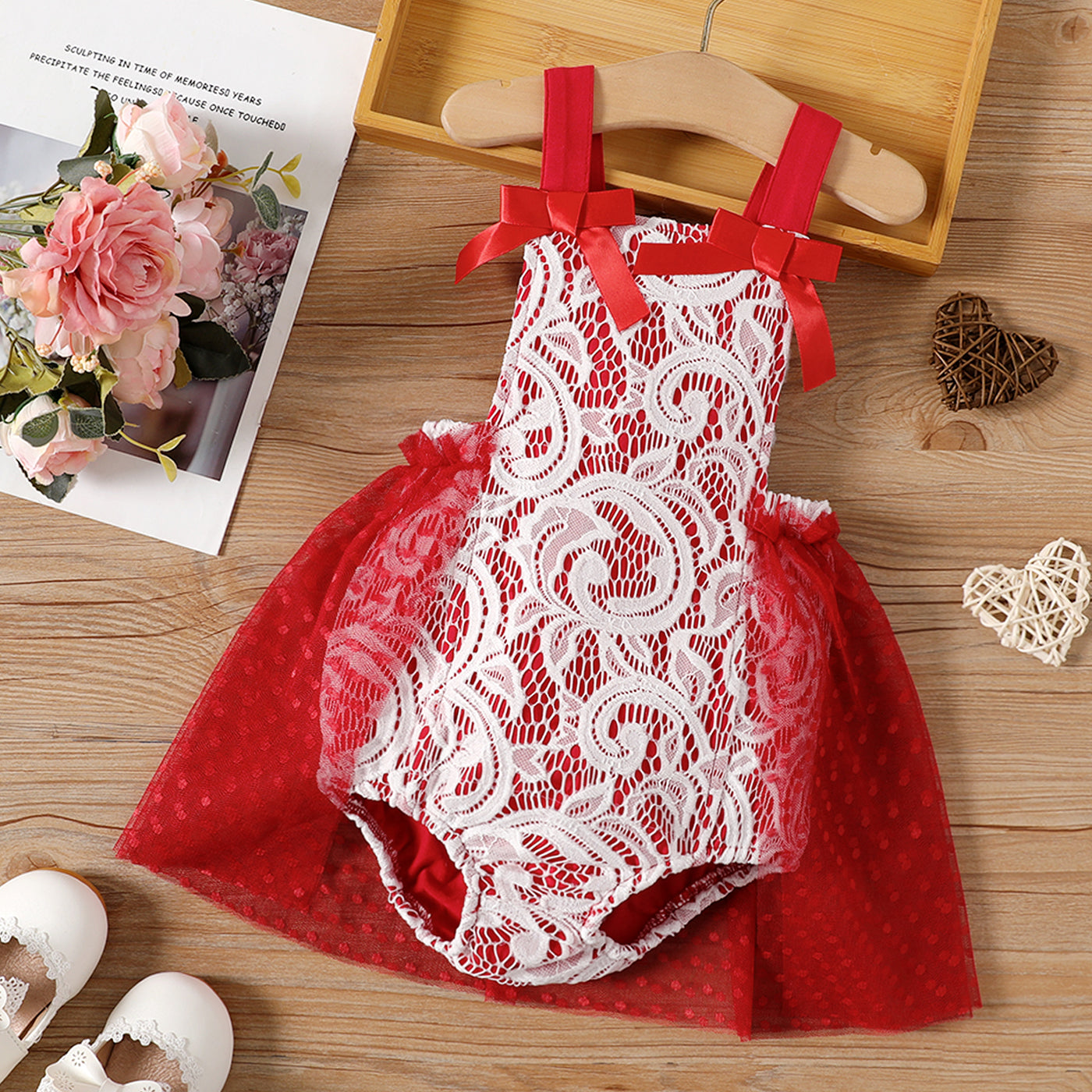 Baby Girl 95% Cotton Lace Textured Sleeveless Mesh Party Dress Romper