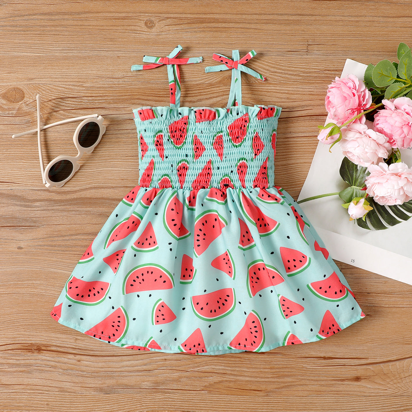 * Supplier: PatPat”Additional information:”Perfect for spring and summer outings and events. Features a beautiful Watermelon print and smocked design.