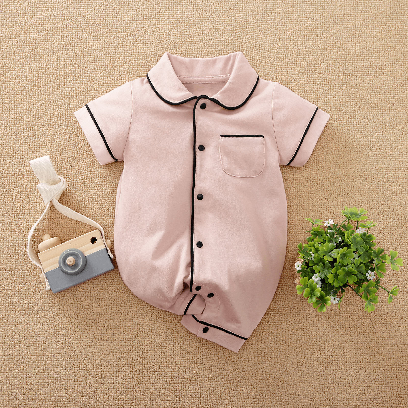 Trendy color blocking design creates a chic look, while the cotton fabric ensures comfort. Four-button snap closure makes diaper changing a breeze. Perfect for any occasion.