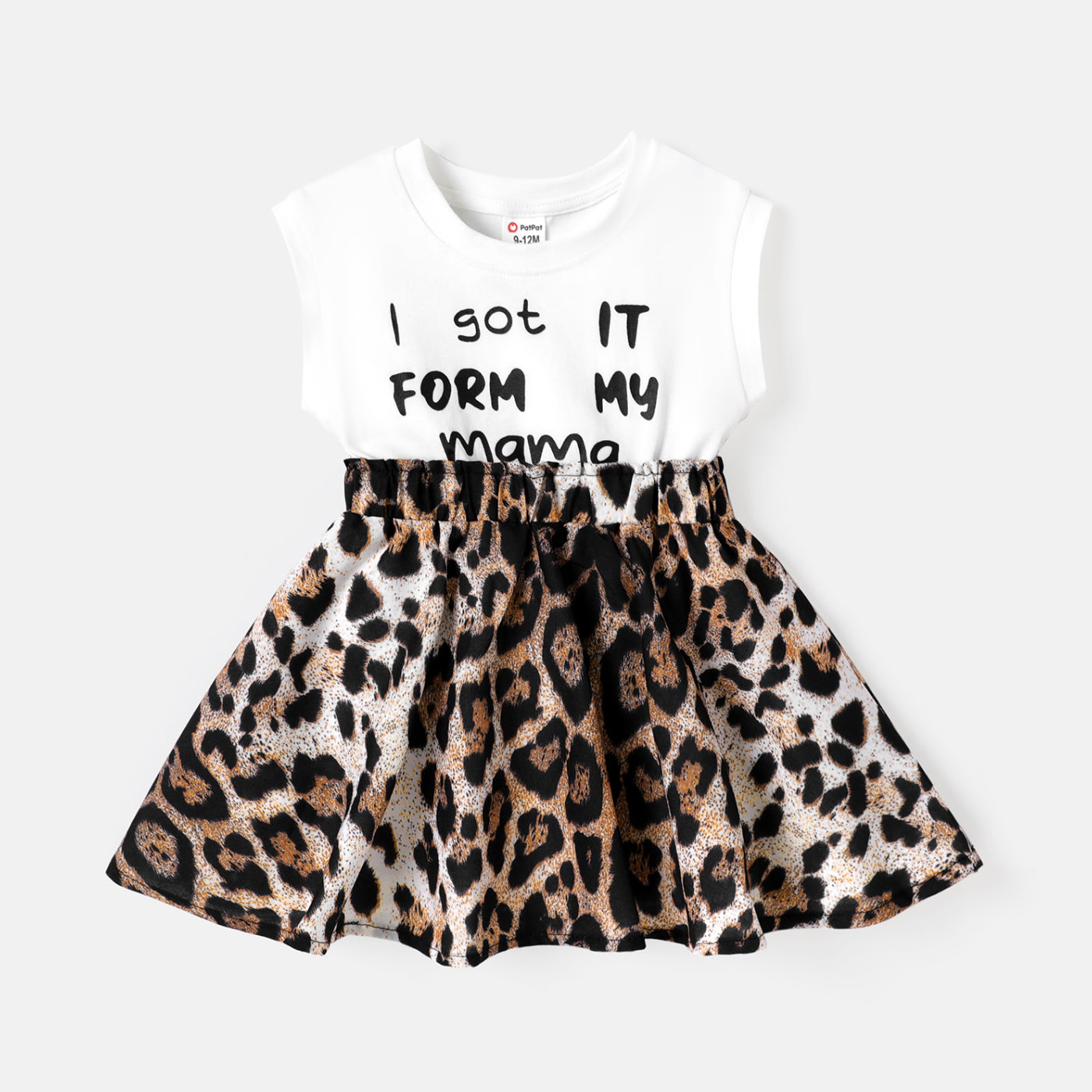 Adorable baby girl dress with cap-sleeve and letter/leopard print spliced design. A stylish and comfortable dress for your little ones.