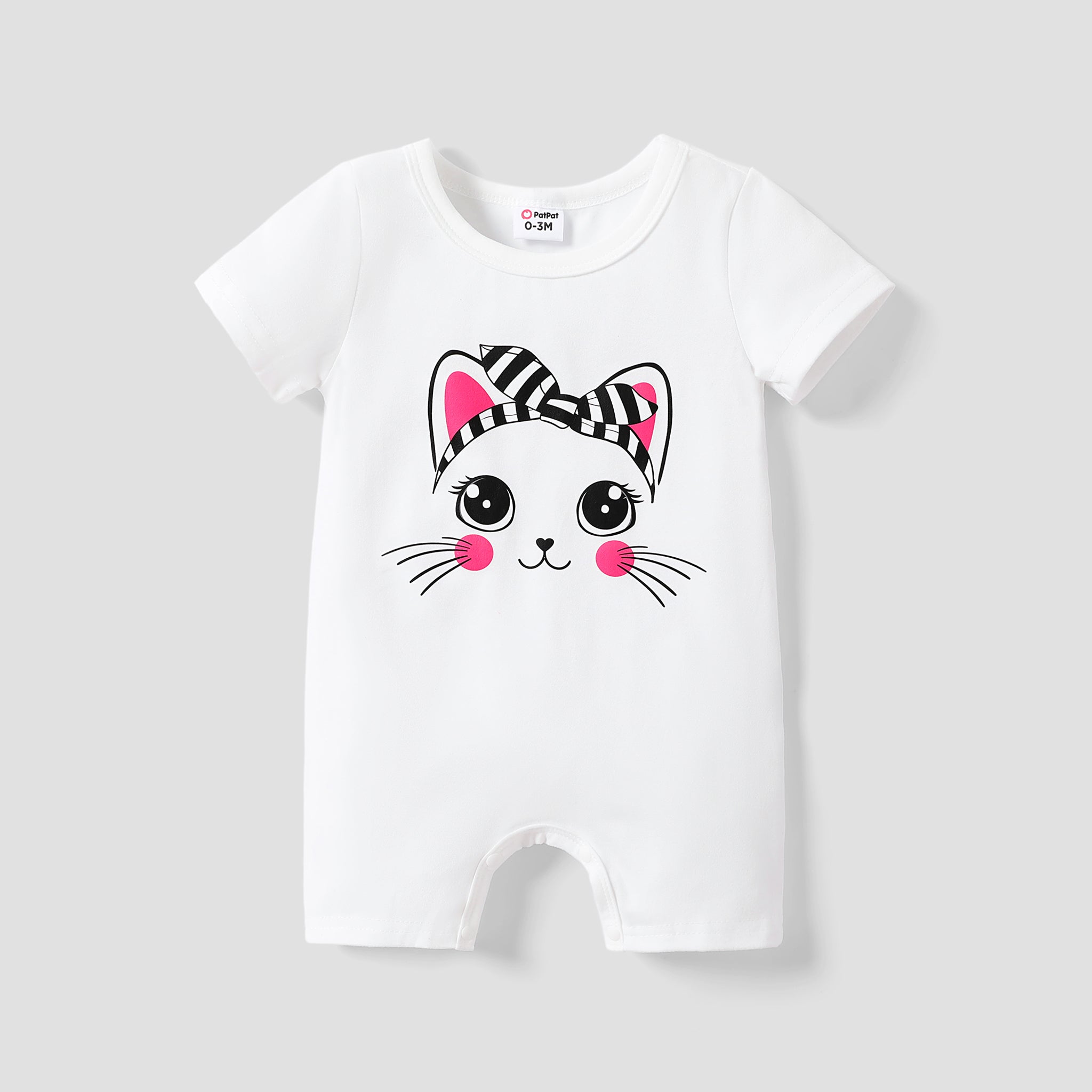 Cute and comfortable short-sleeved romper for baby girls with rabbit print.