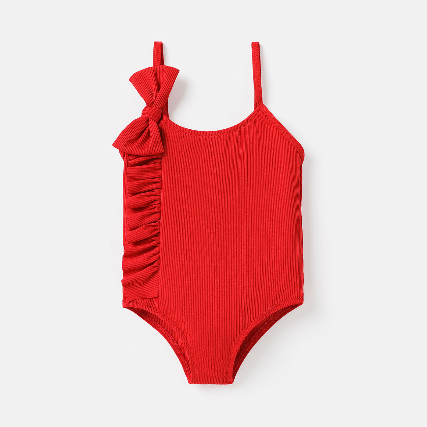 Baby Girl Solid Ruffle Trim Bow Decor One Piece Cami Swimsuit
