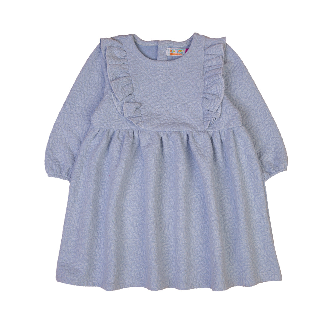 Dress your baby in style with our Blue Textured Long Sleeve Dress, perfect for making cherished memories. This elegant piece features a beautiful textured fabric and delightful ruffle details, ideal for special occasions.