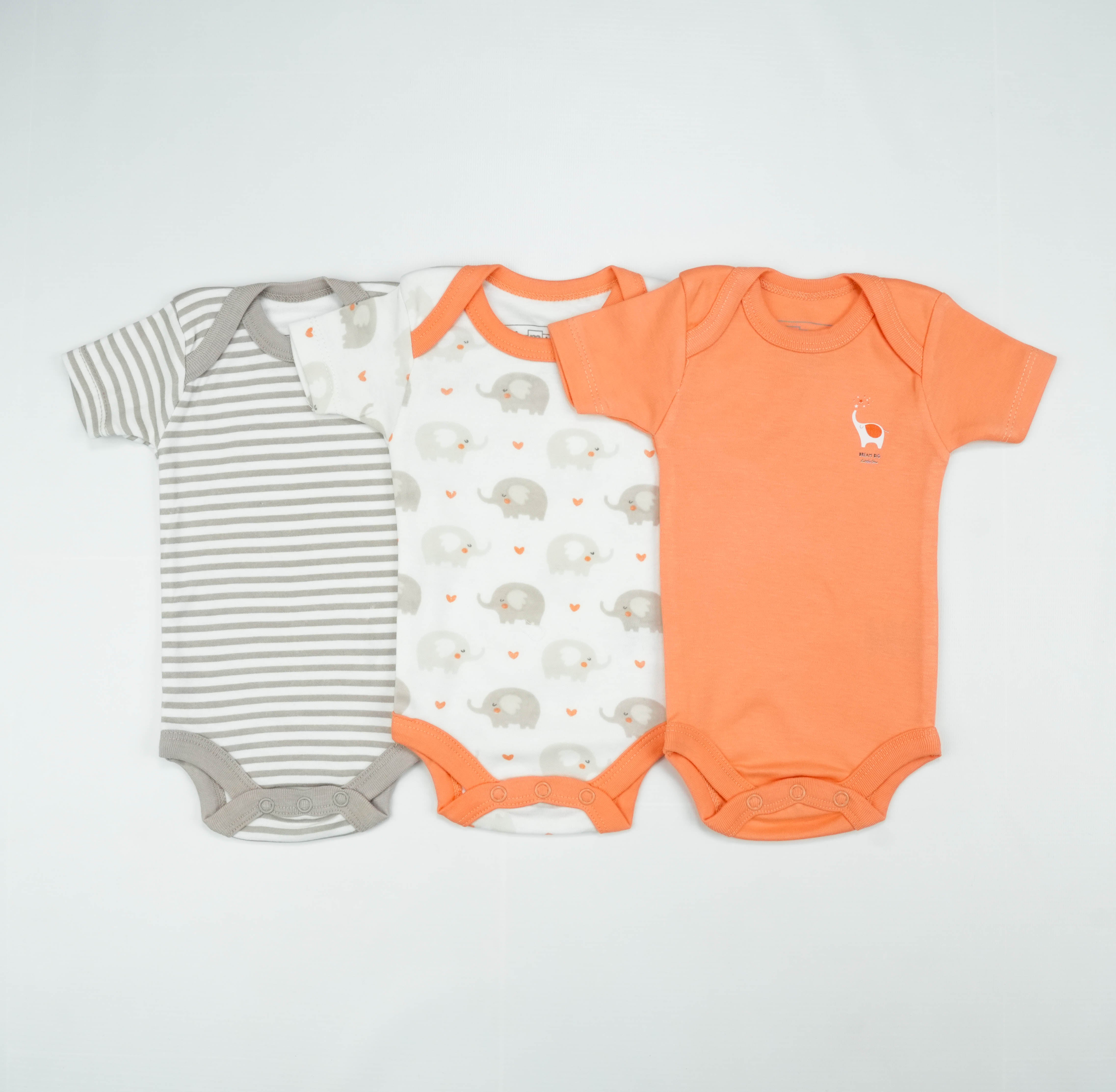 Don’t miss out on this must-have BODY SUIT PK3 NB PEACH ELEPHANT. Order now and dress your baby in comfort and style!