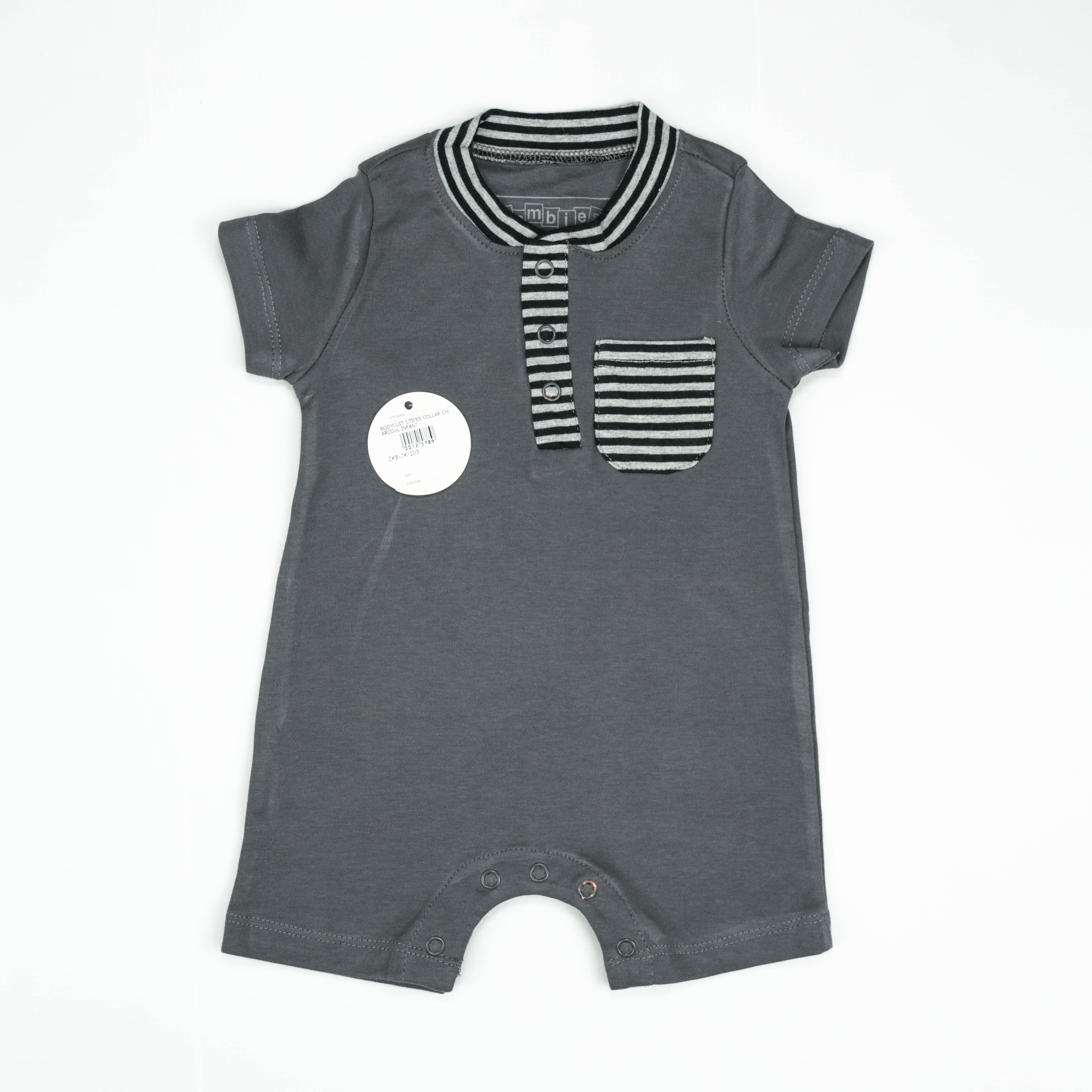 Comfort Meets Style: BODYSUIT STIPES COLLAR CHARCOAL INFANT