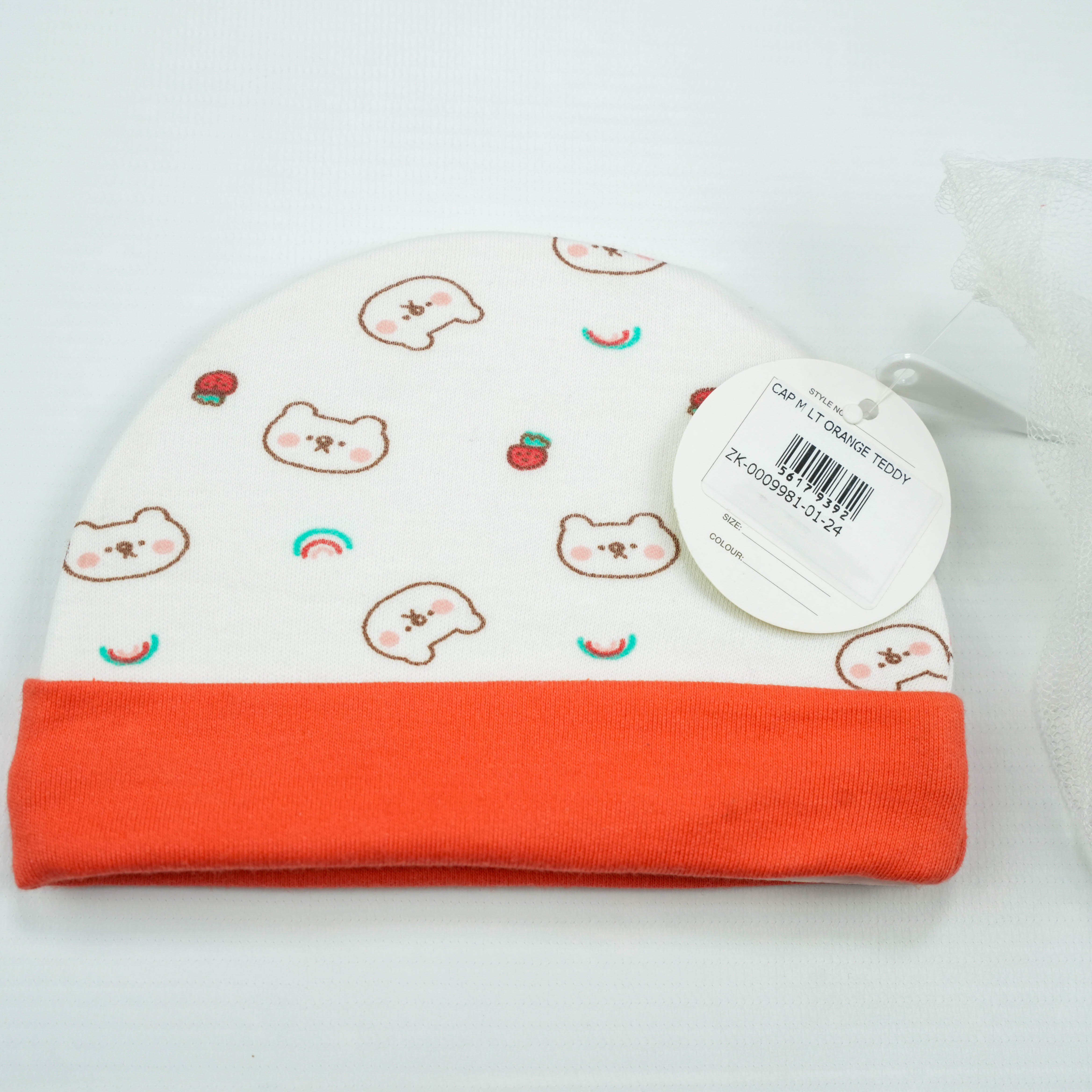 Introducing the CAP M LT ORANGE TEDDY, a delightfully adorable cap designed to keep your baby stylish and cozy. Crafted with love, this cap features a charming teddy bear design that will instantly brighten your child’s outfit.