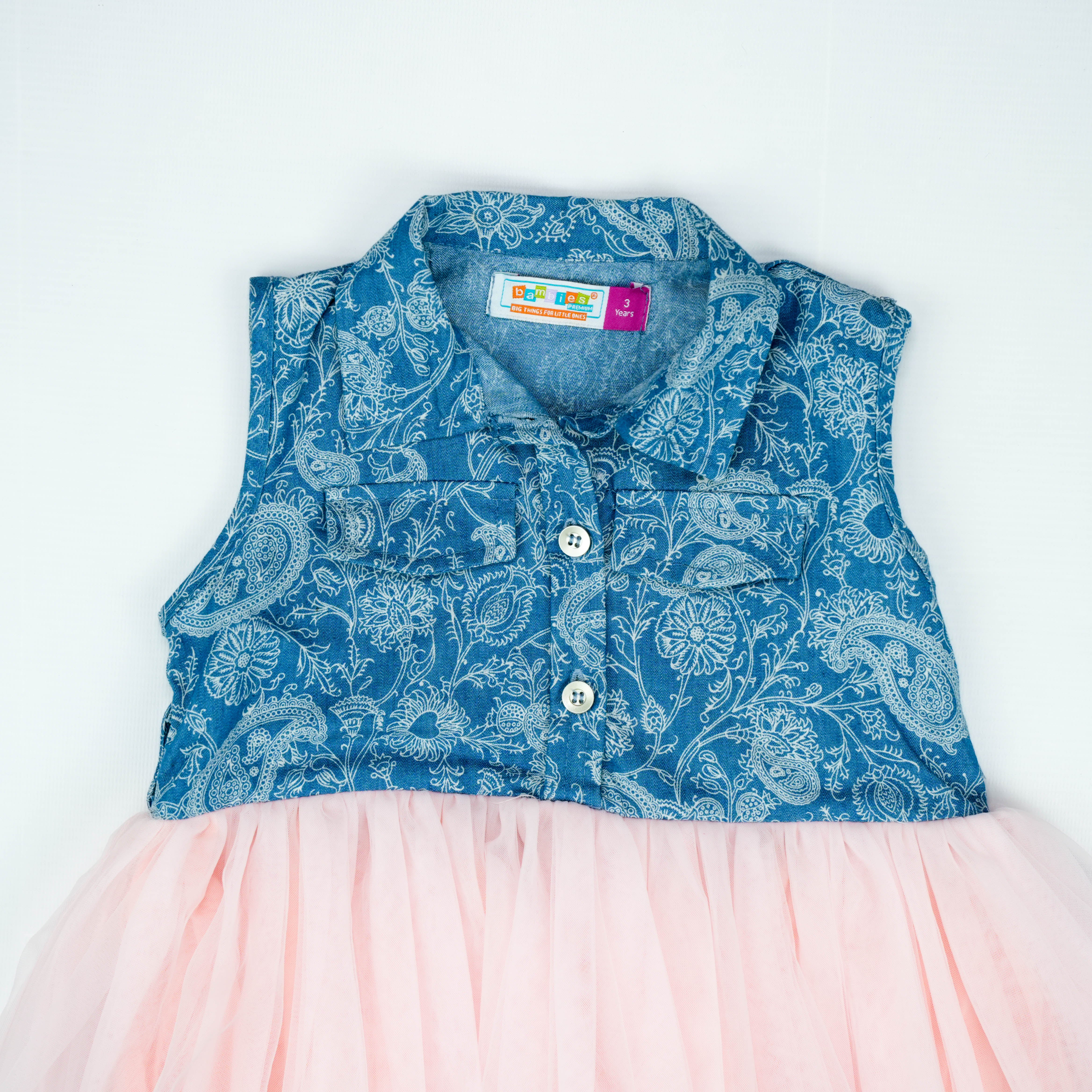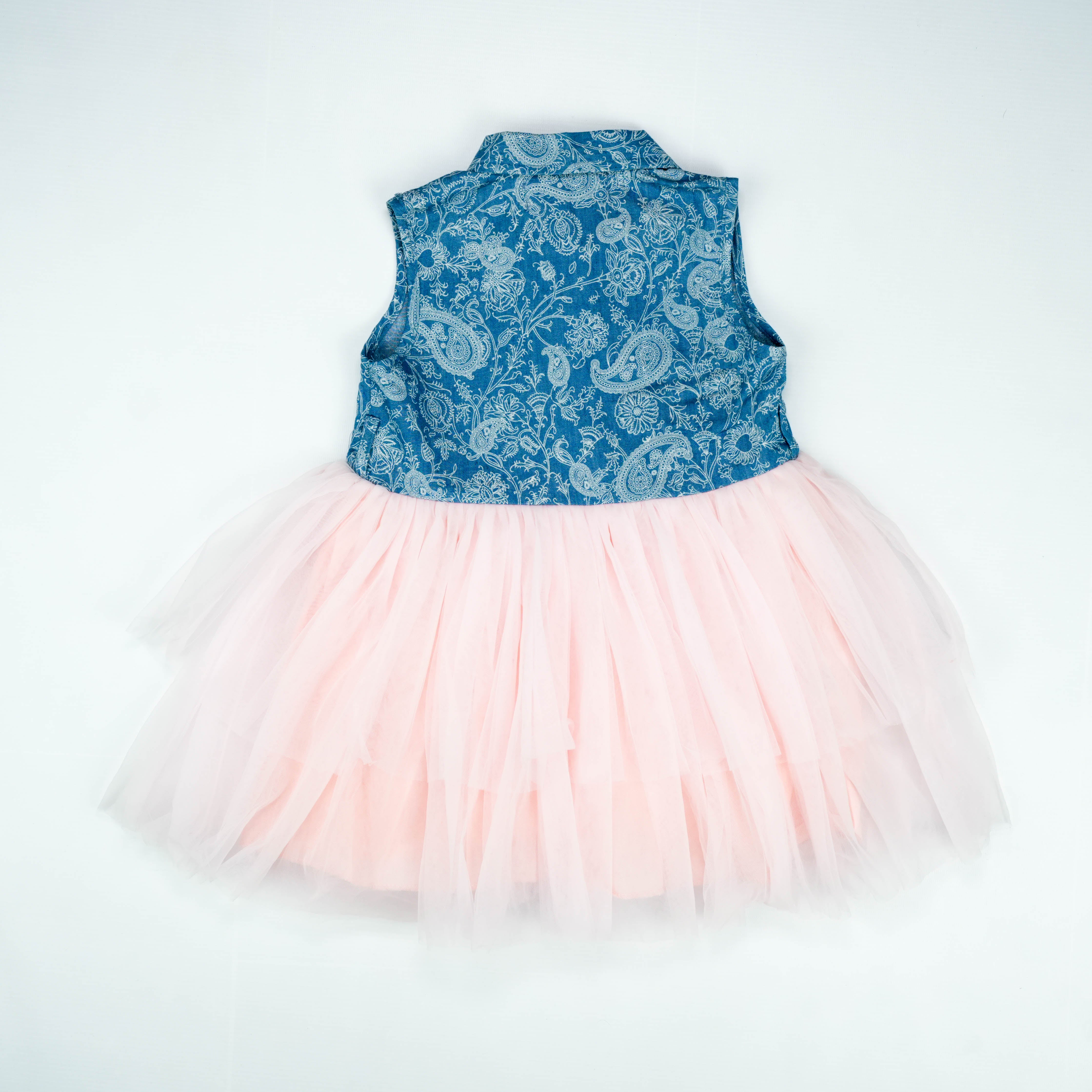 Denim Floral Bodice with Pink Tulle Skirt Dress