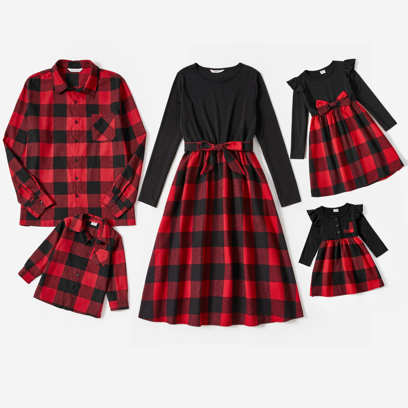 Dress up and look coordinated with your family in this Christmas Red Plaid Splicing Black Long-sleeve Dresses and Shirts Sets.