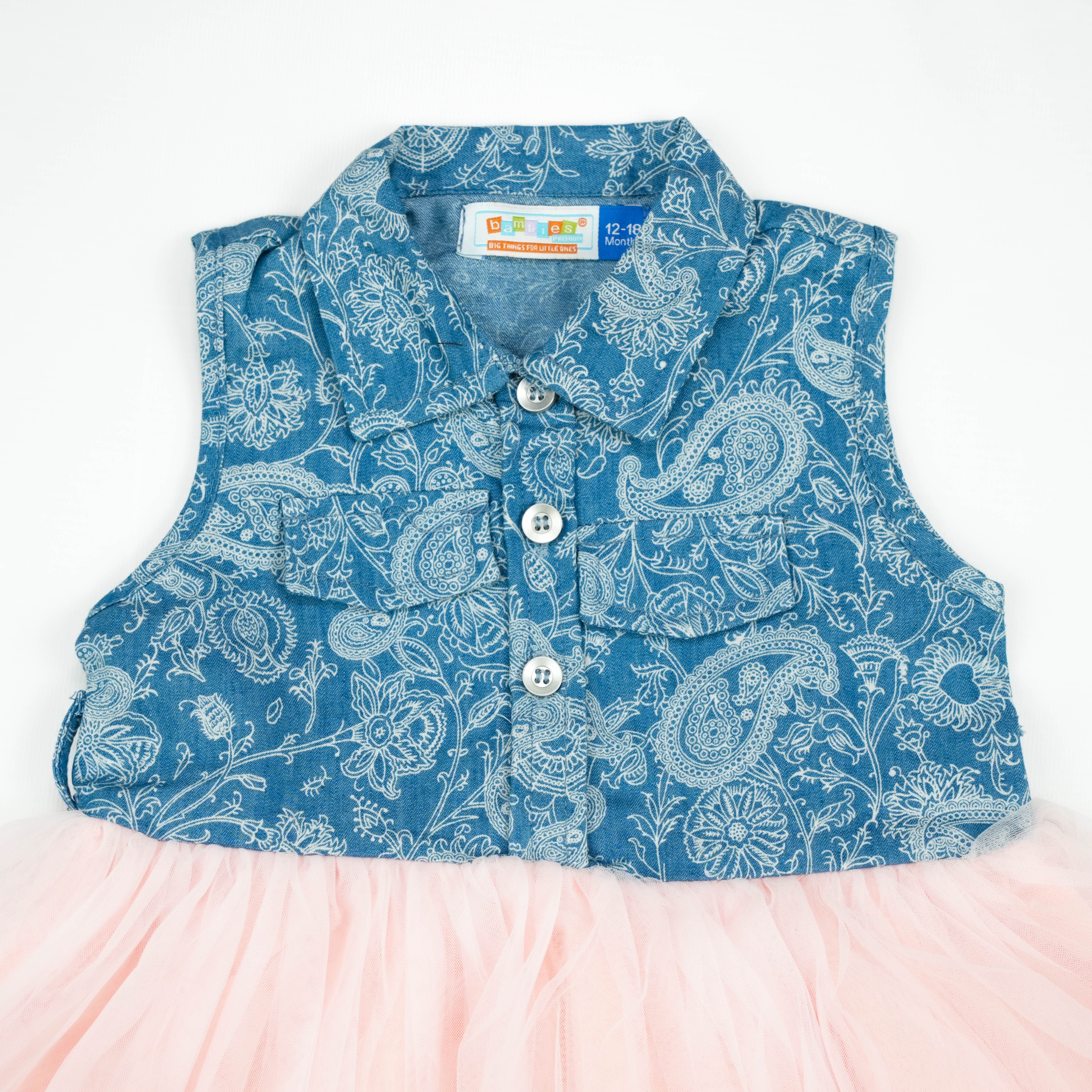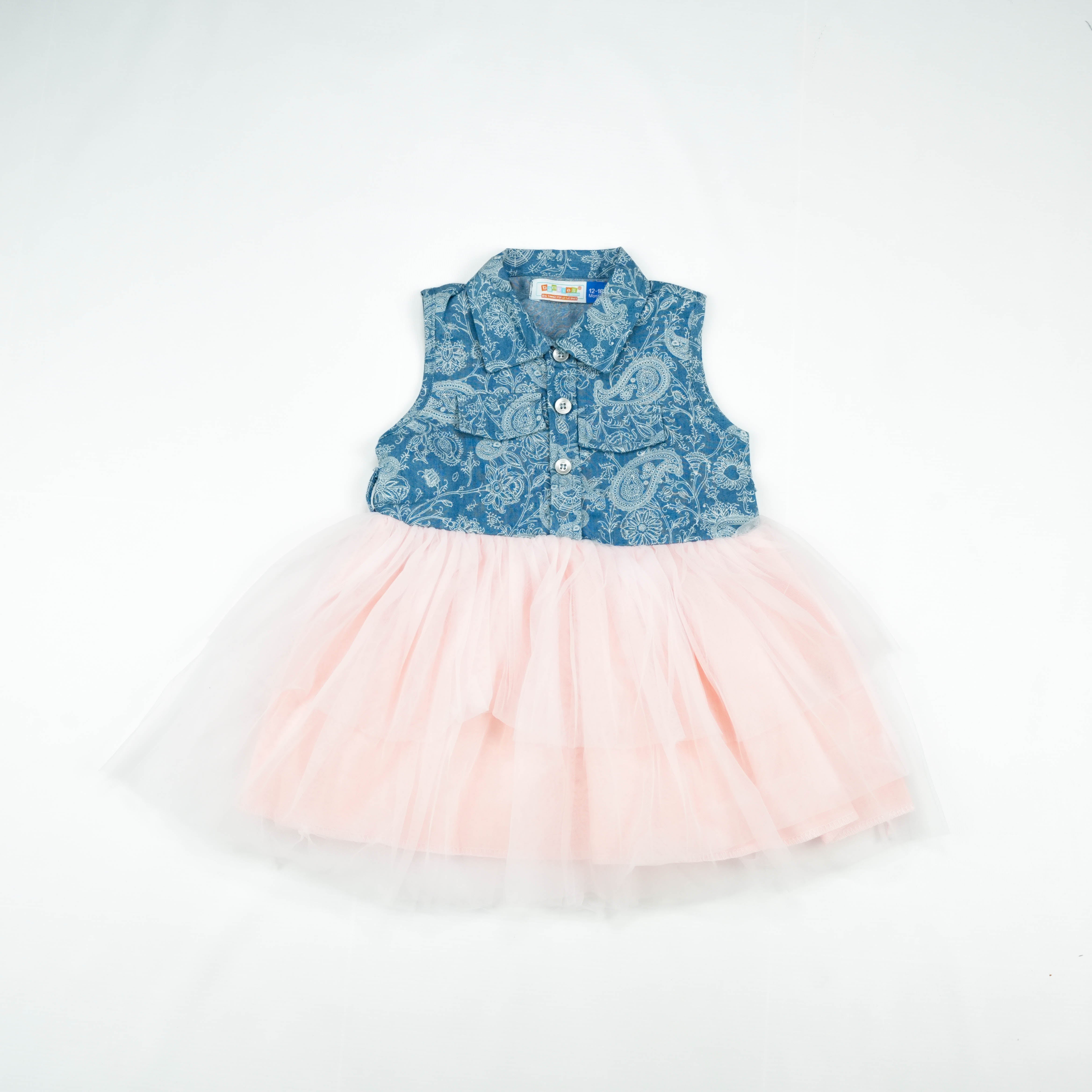 Introducing the FRCOK DENIM WITH PINK NET INFANT, the perfect blend of comfort and style for your baby girl. Crafted with soft denim and a charming pink net overlay, this outfit is ideal for any occasion.