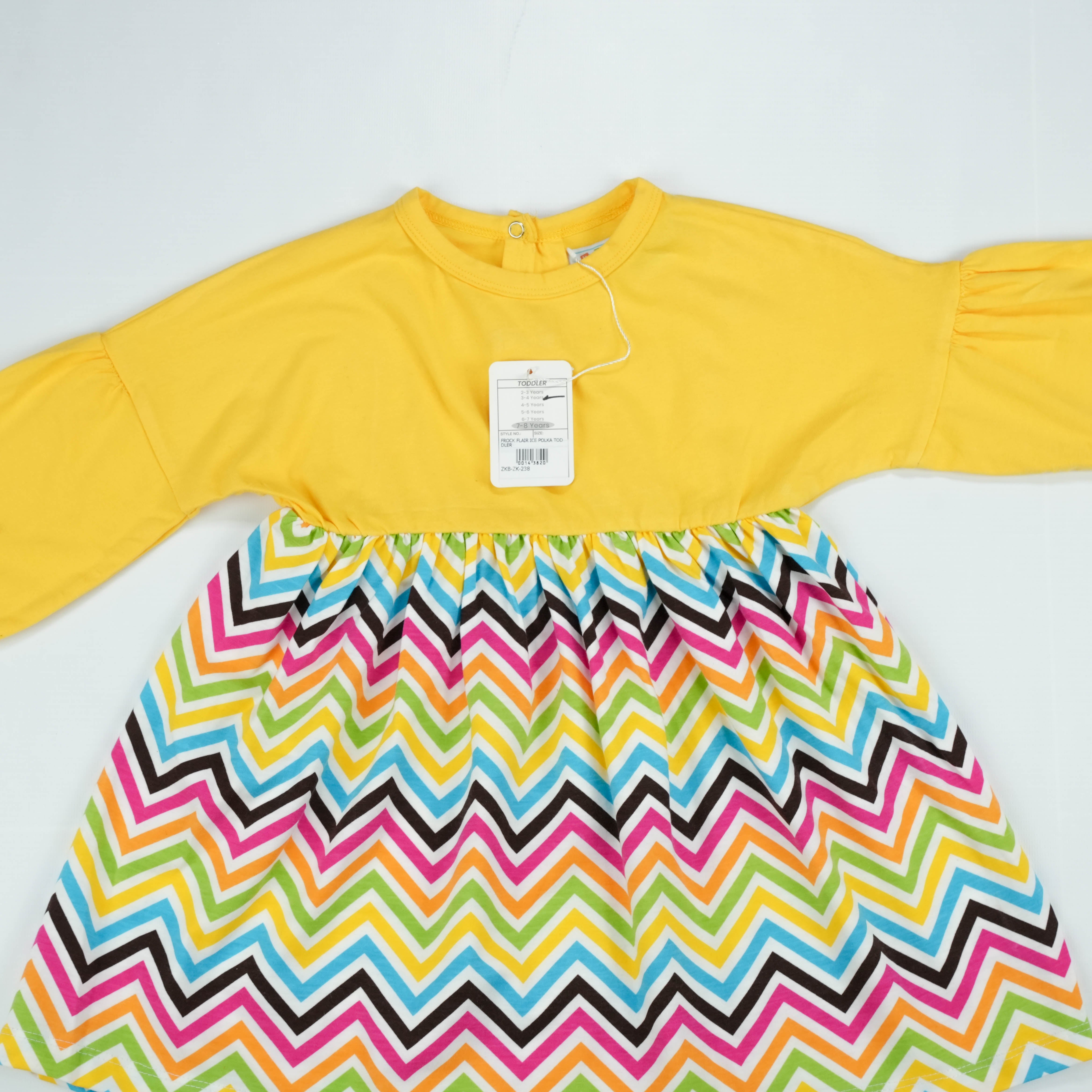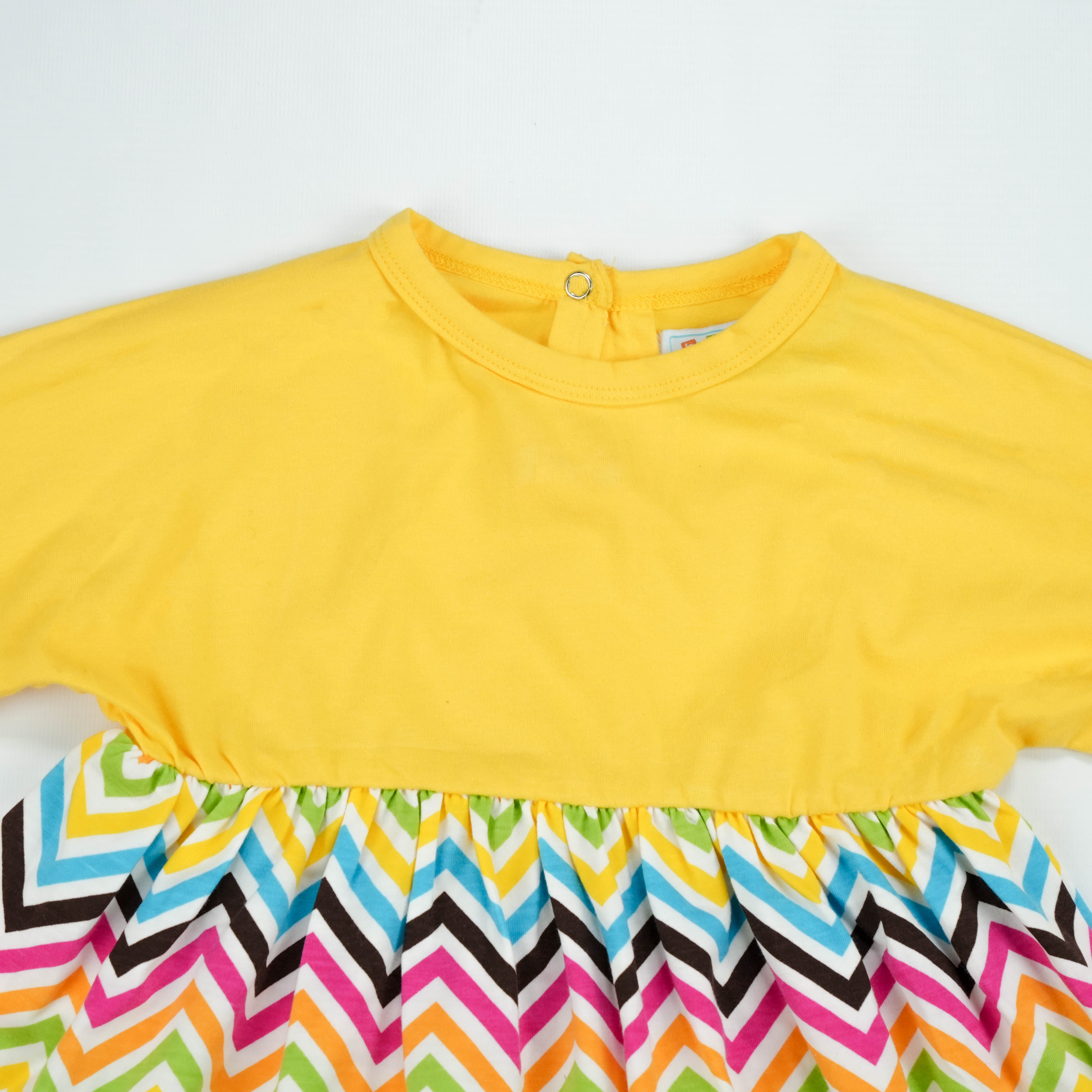 Crafted from high-quality cotton, this frock ensures maximum comfort while offering durability. The vibrant colors and playful polka dots add a touch of fun, while the easy-to-use buttons make dressing a breeze.