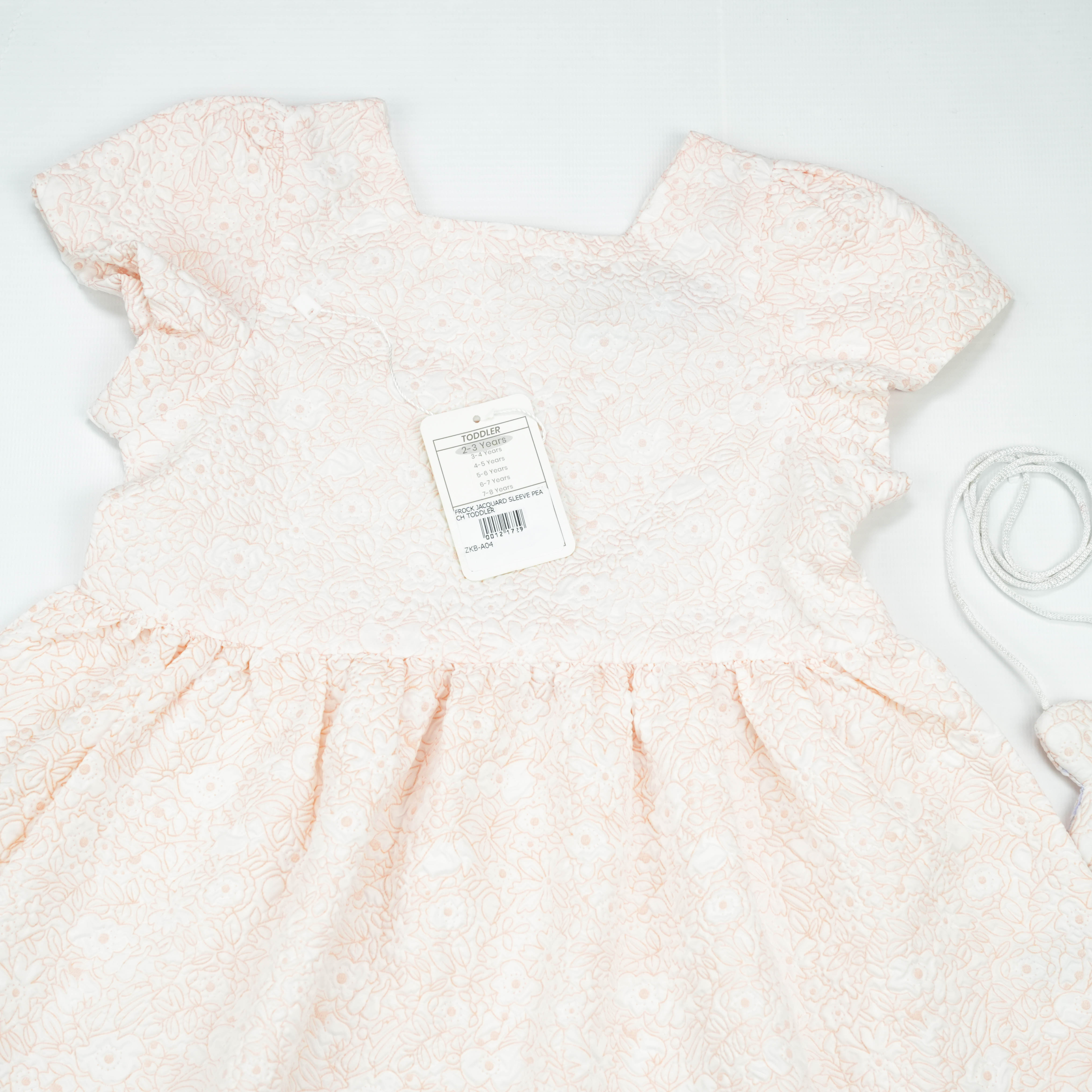 Adorable Frock Jacquard Sleeve Peach Toddler