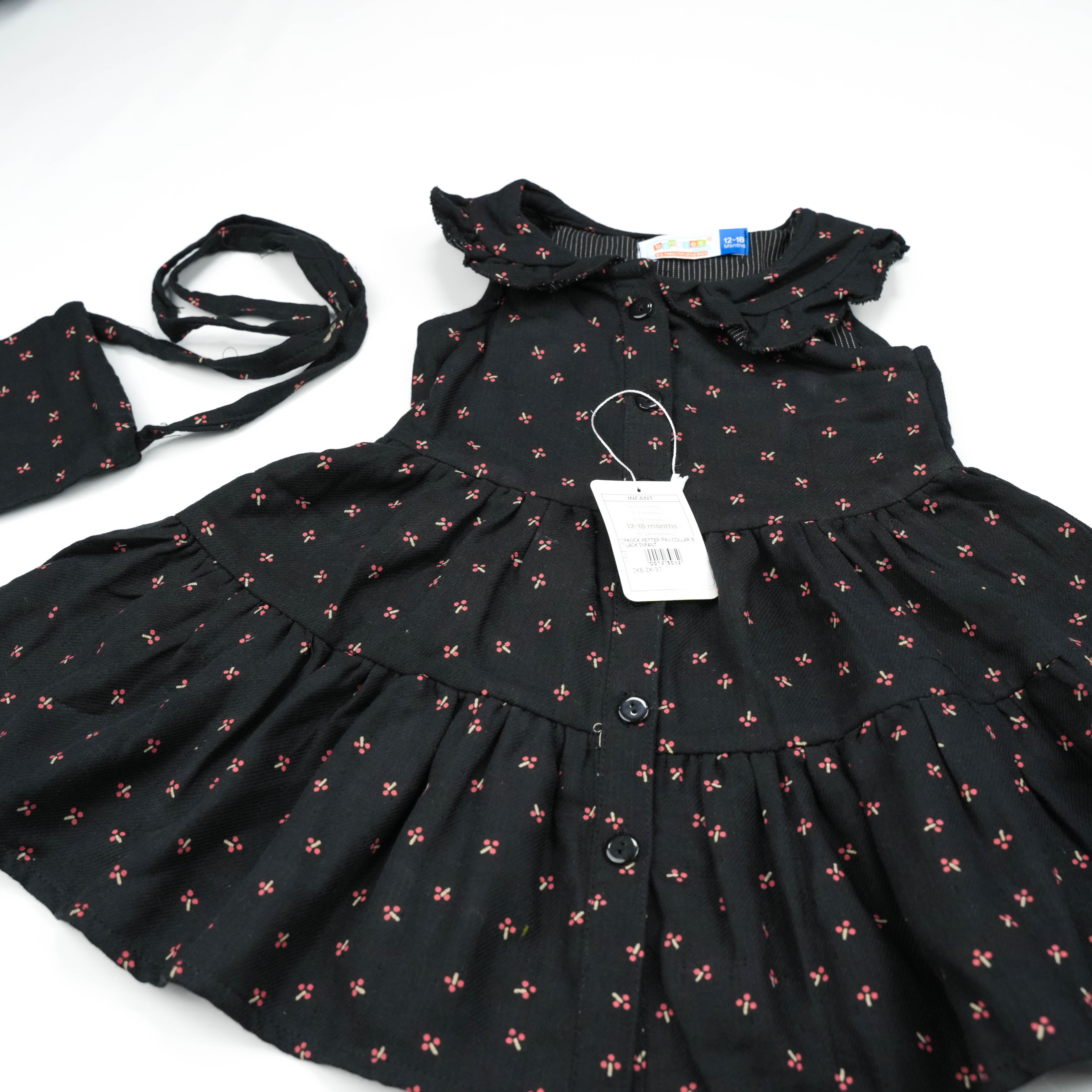 Introducing the FROCK PETTER PAN COLLAR BLACK INFANT, a perfect blend of elegance and comfort for your baby. This adorable frock is designed to make your infant stand out at any occasion.