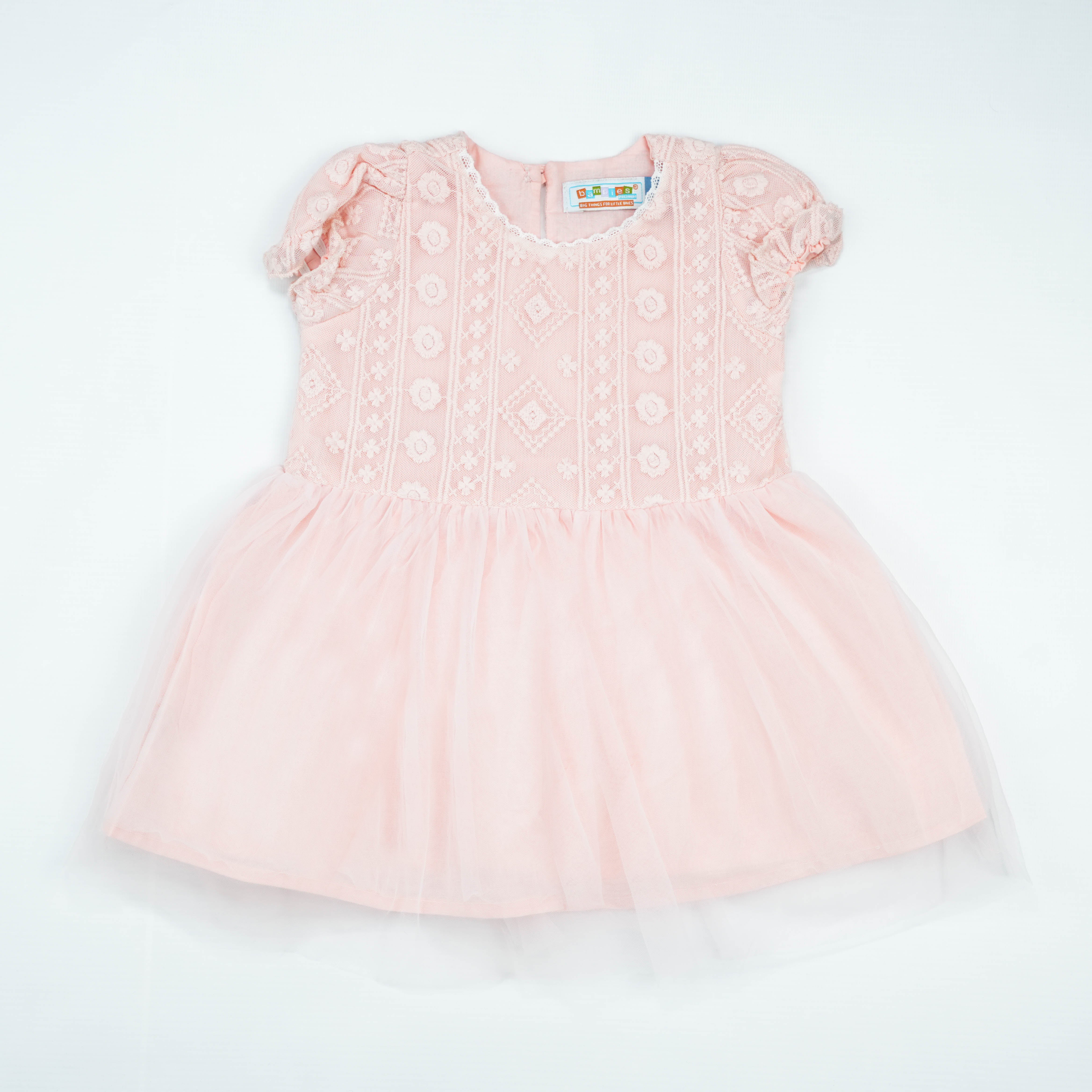 FROCK PUFF SLEEVE NET PINK INFANT