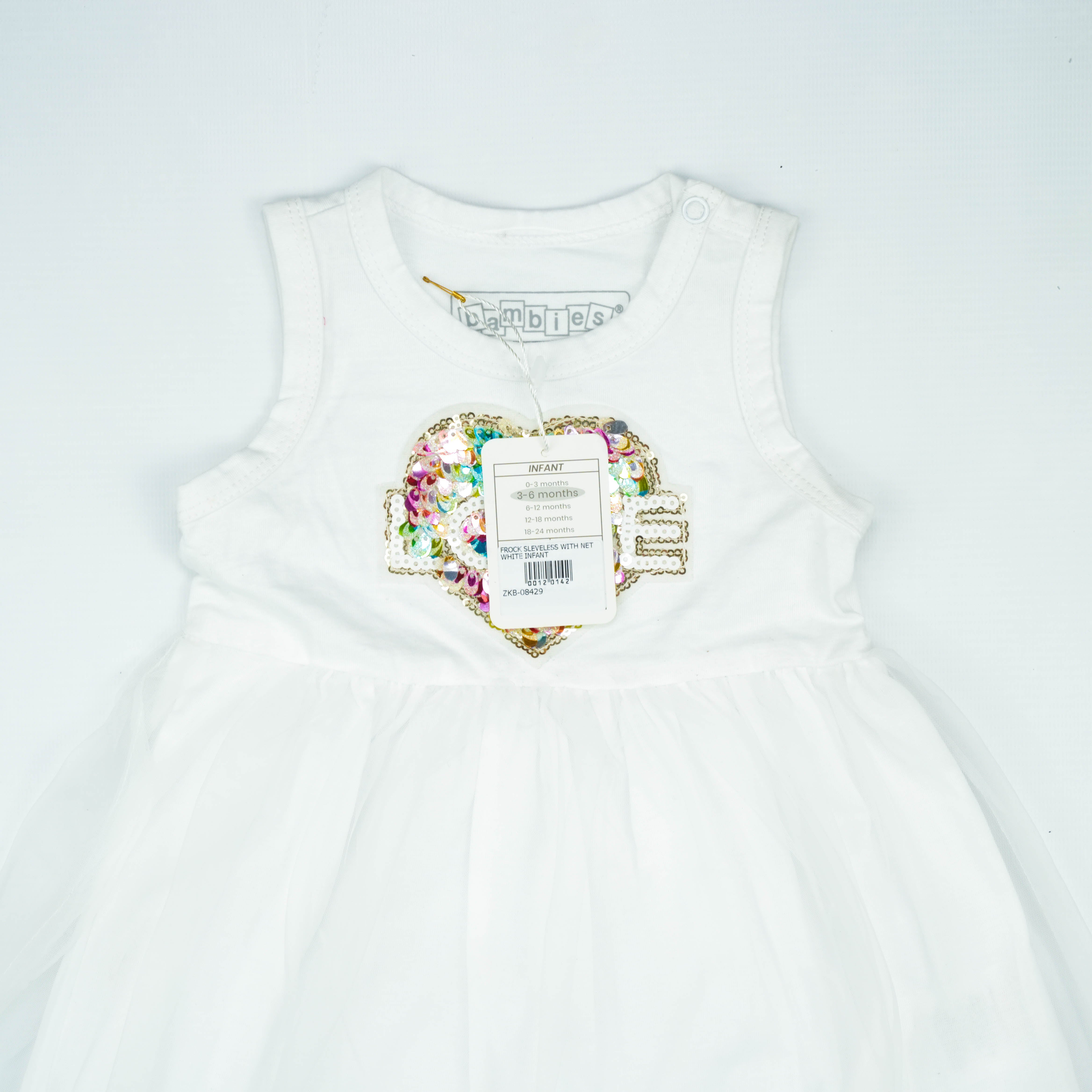 Our FROCK SLEVELESS WITH NET WHITE INFANT is the perfect blend of elegance and comfort for your baby girl. This charming frock is designed to make her shine during any occasion.
