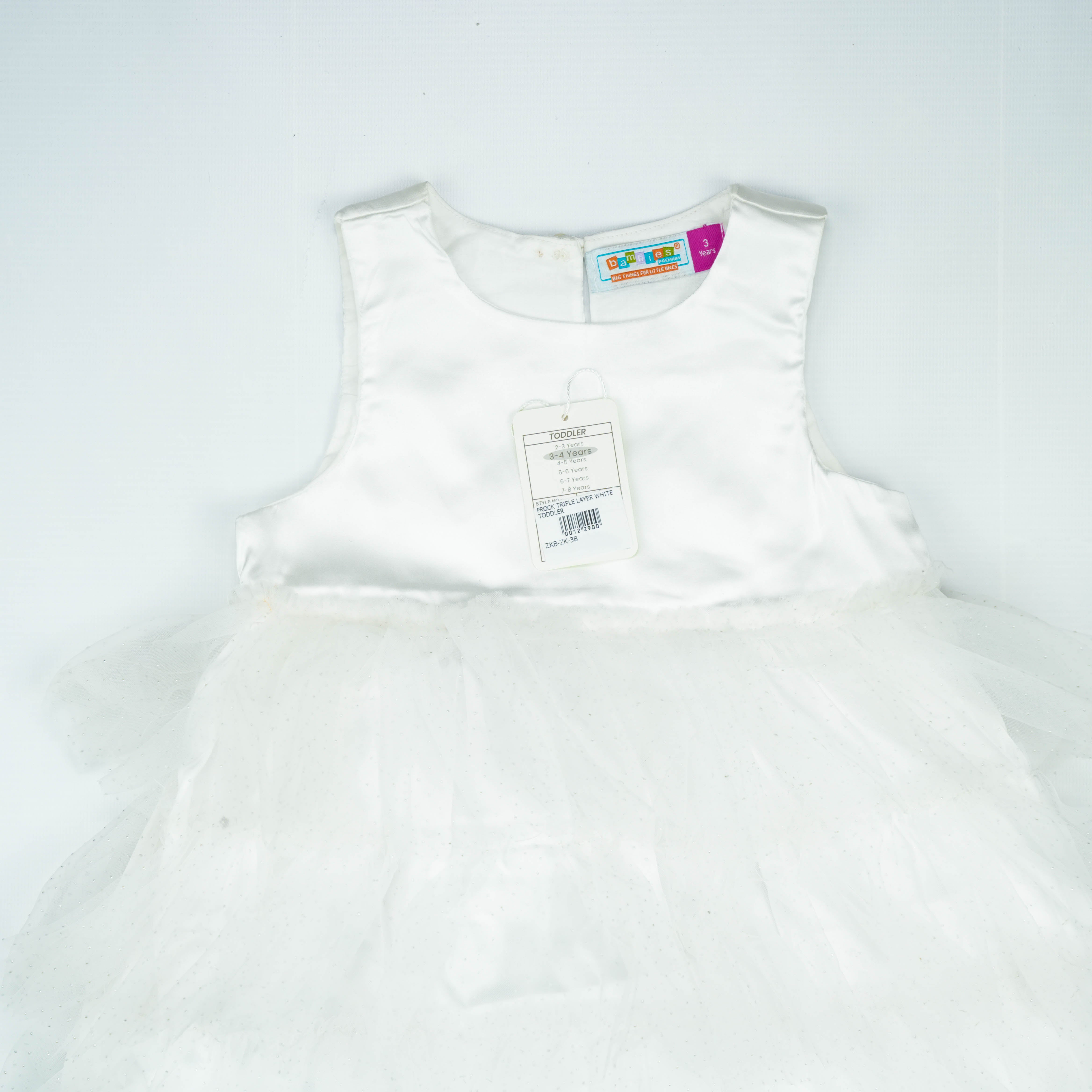 Dress your little princess in our stunning FROCK TRIPLE LAYER WHITE TODDLER. This beautiful frock is designed to make your toddler shine at every event, from birthday parties to family gatherings.