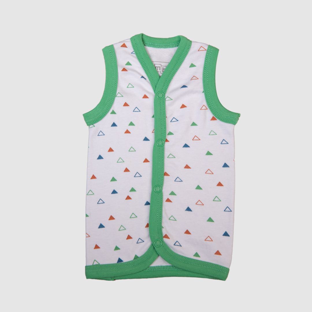 Crafted with care, this vest set is designed to keep your baby cool and stylish. The vibrant green trim adds a touch of flair making it perfect for outings or lounging at home.