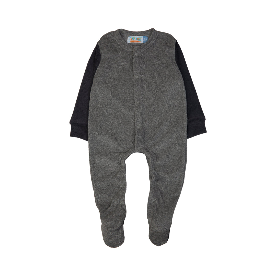 Stylish and Cozy Grey Baby Onesie with Black Sleeves