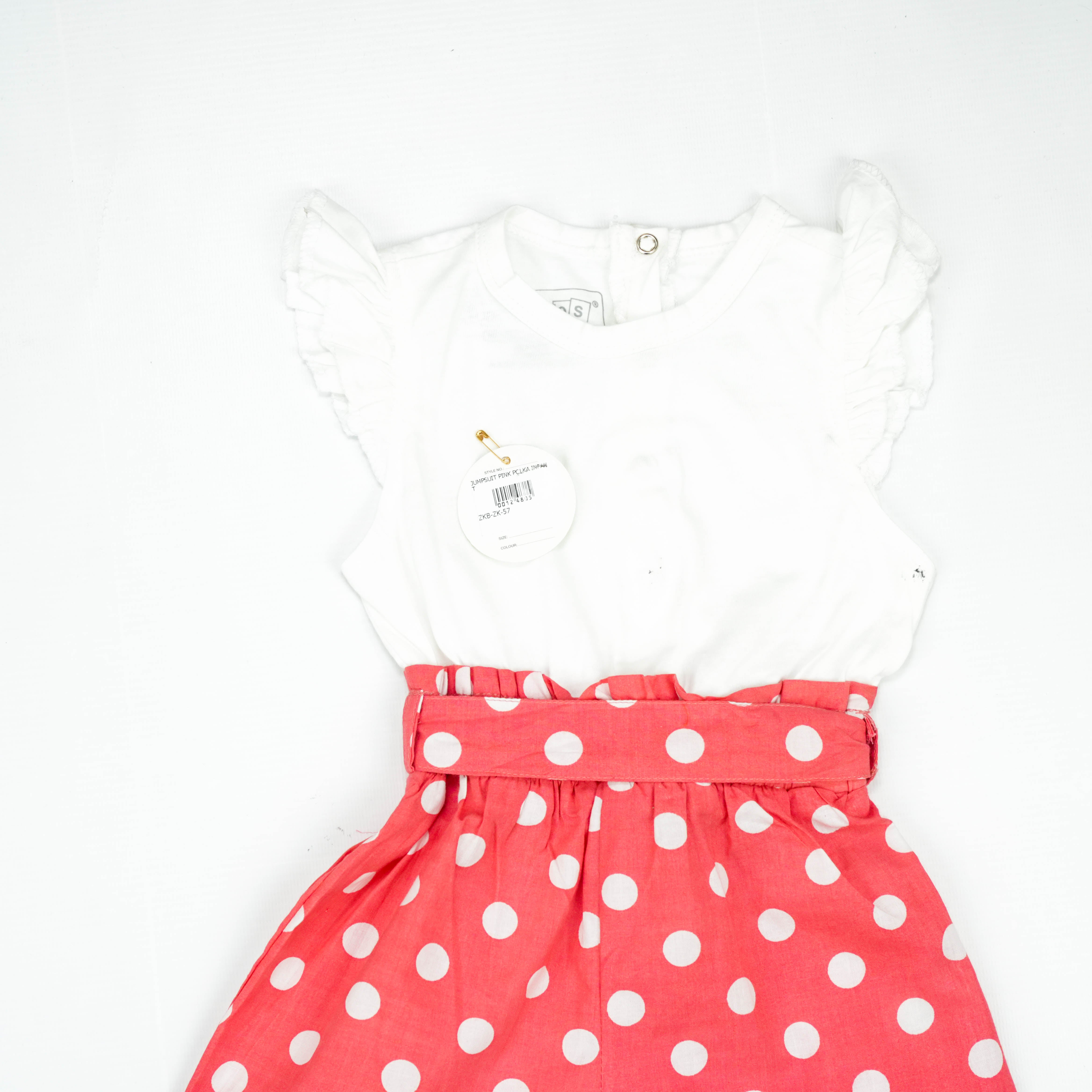 Introducing the JUMPSUIT PINK POLKA INFANT, a delightful addition to your baby’s wardrobe! This adorable jumpsuit combines comfort and style, making it perfect for playdates or family outings.