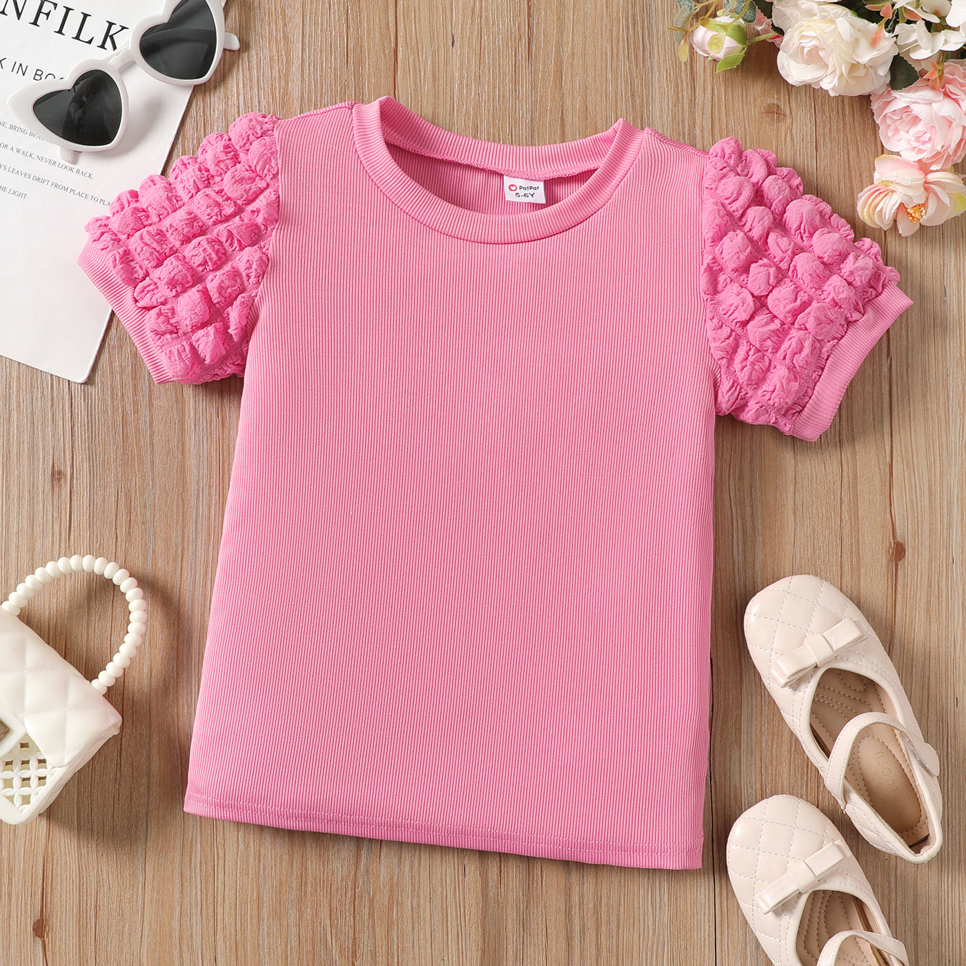 Perfect for any season and occasion, this top adds a touch of chic to any outfit. Its textured fabric and on-trend puff sleeves make it a must-have for your little fashionista’s wardrobe.