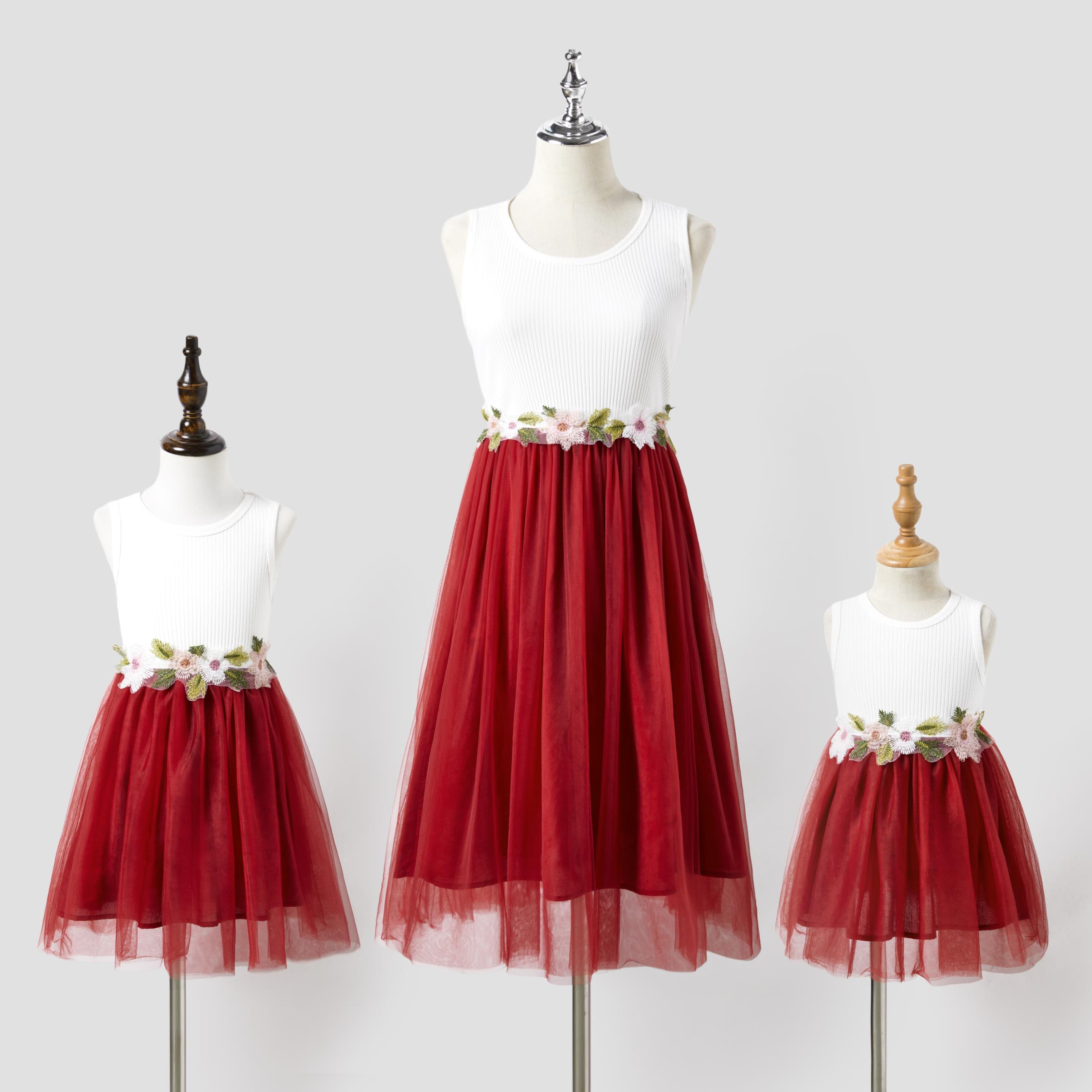 Stylish red and white matching outfits for mom, daughter, and granddaughter.