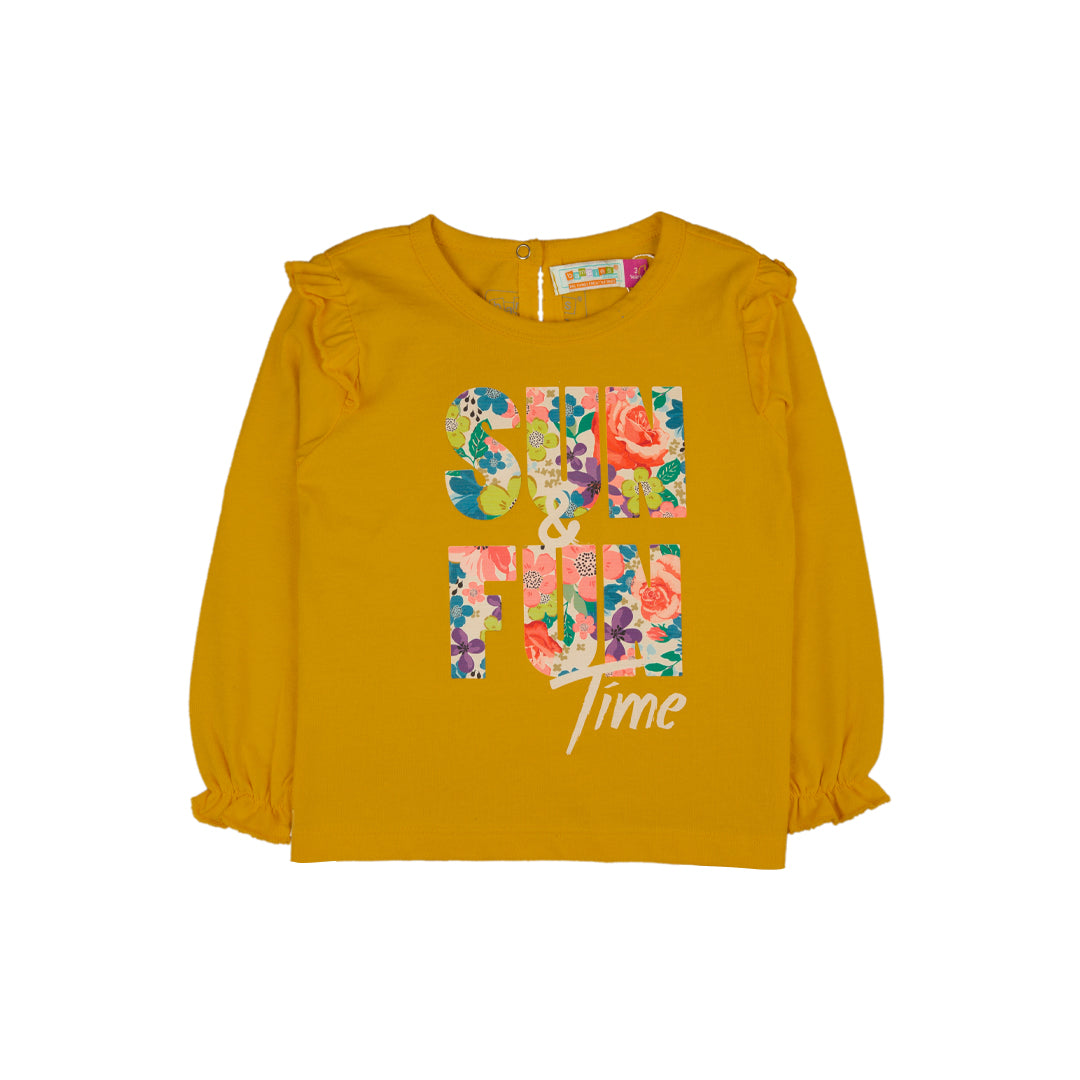 Don’t miss out on this adorable addition to your baby’s wardrobe! Order the Mustard Yellow ‘Sun & Fun Time’ Shirt today and let your little one shine in style!