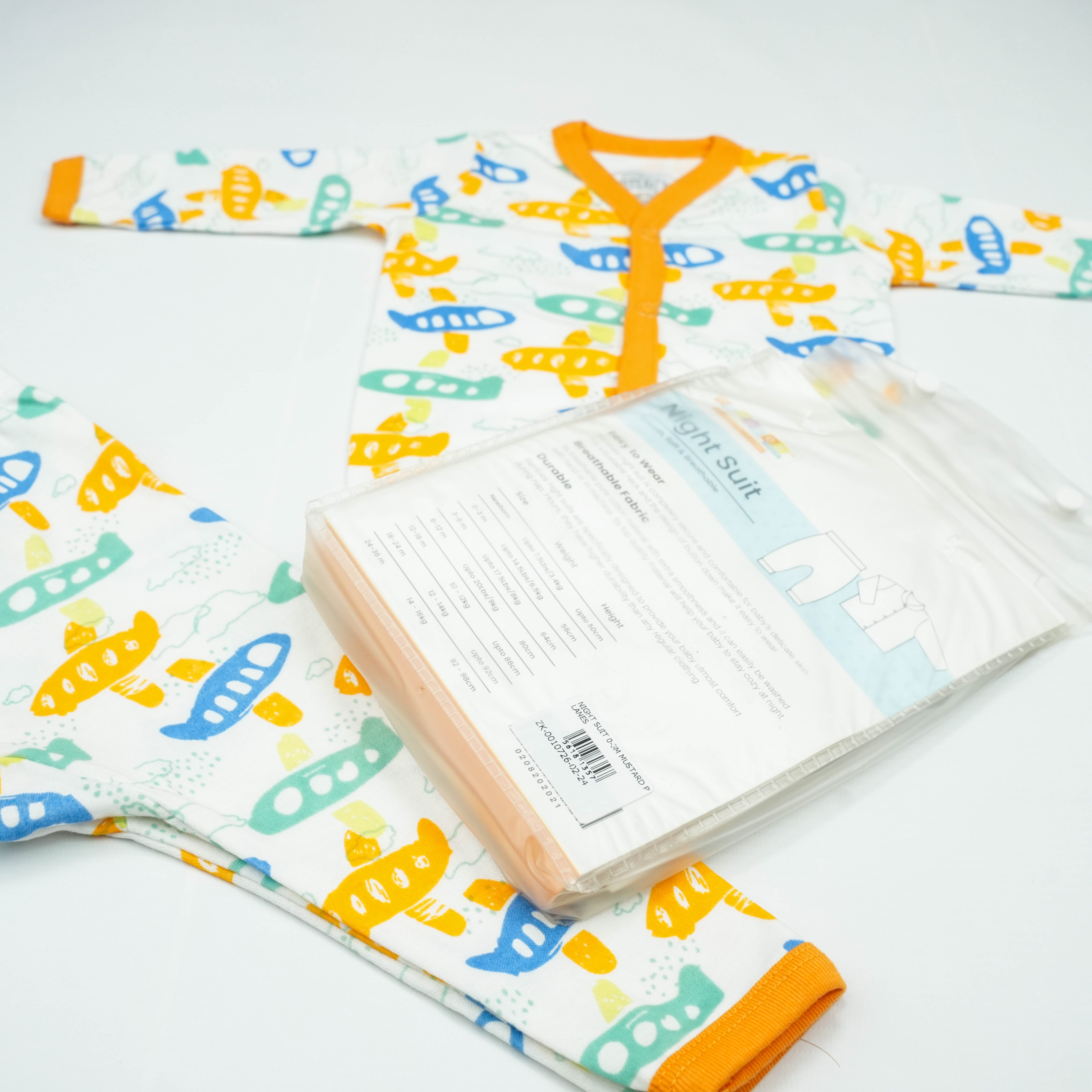 The NIGHT SUIT 0-3M MUSTARD PLANES is the perfect blend of comfort and cuteness for your little one! Designed to keep your baby cozy, this night suit features adorable plane prints that will make bedtime fun.