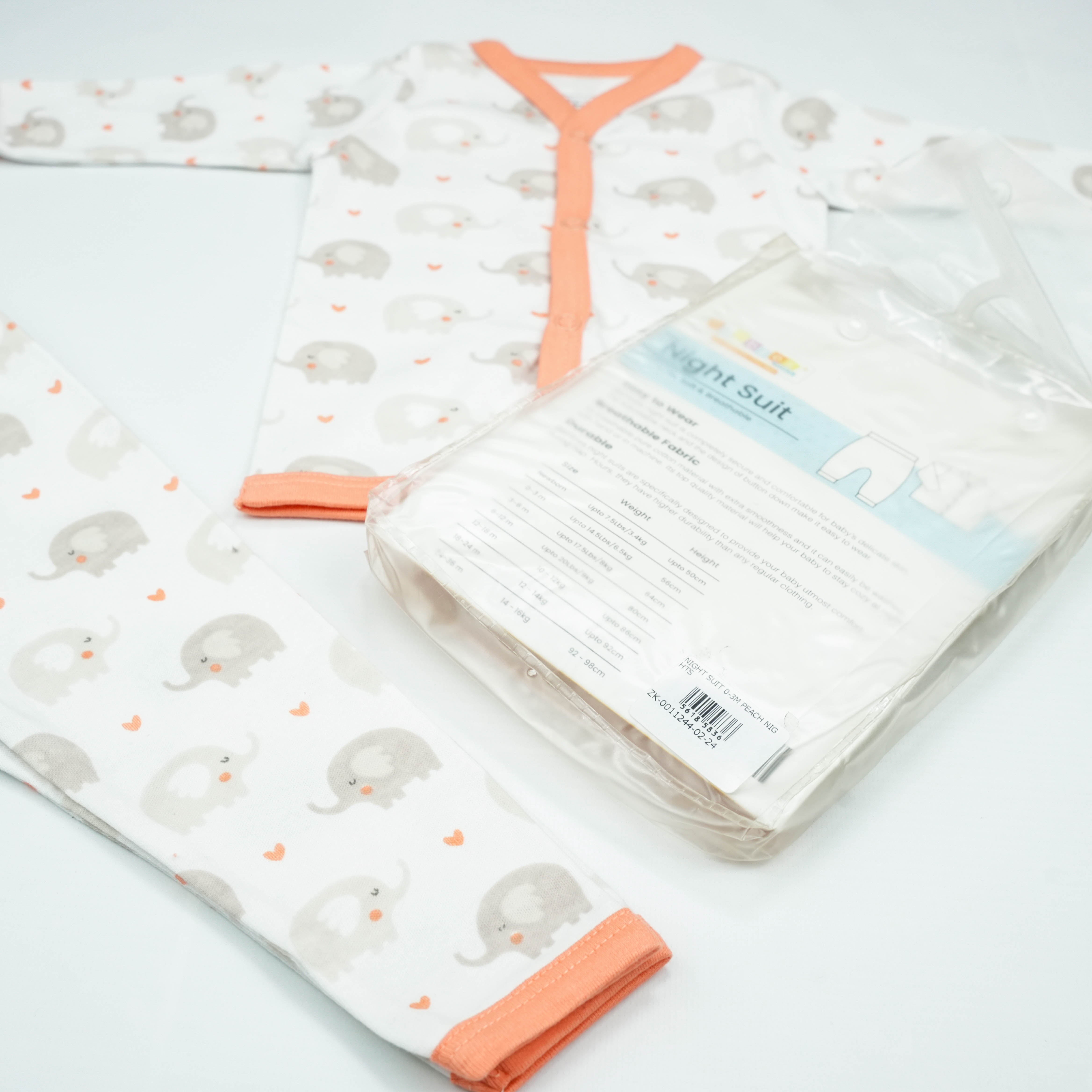 Give your baby the comfort they deserve with the NIGHT SUIT 0-3M PEACH ELEPHANTS. Order now and make bedtime a delightful experience!