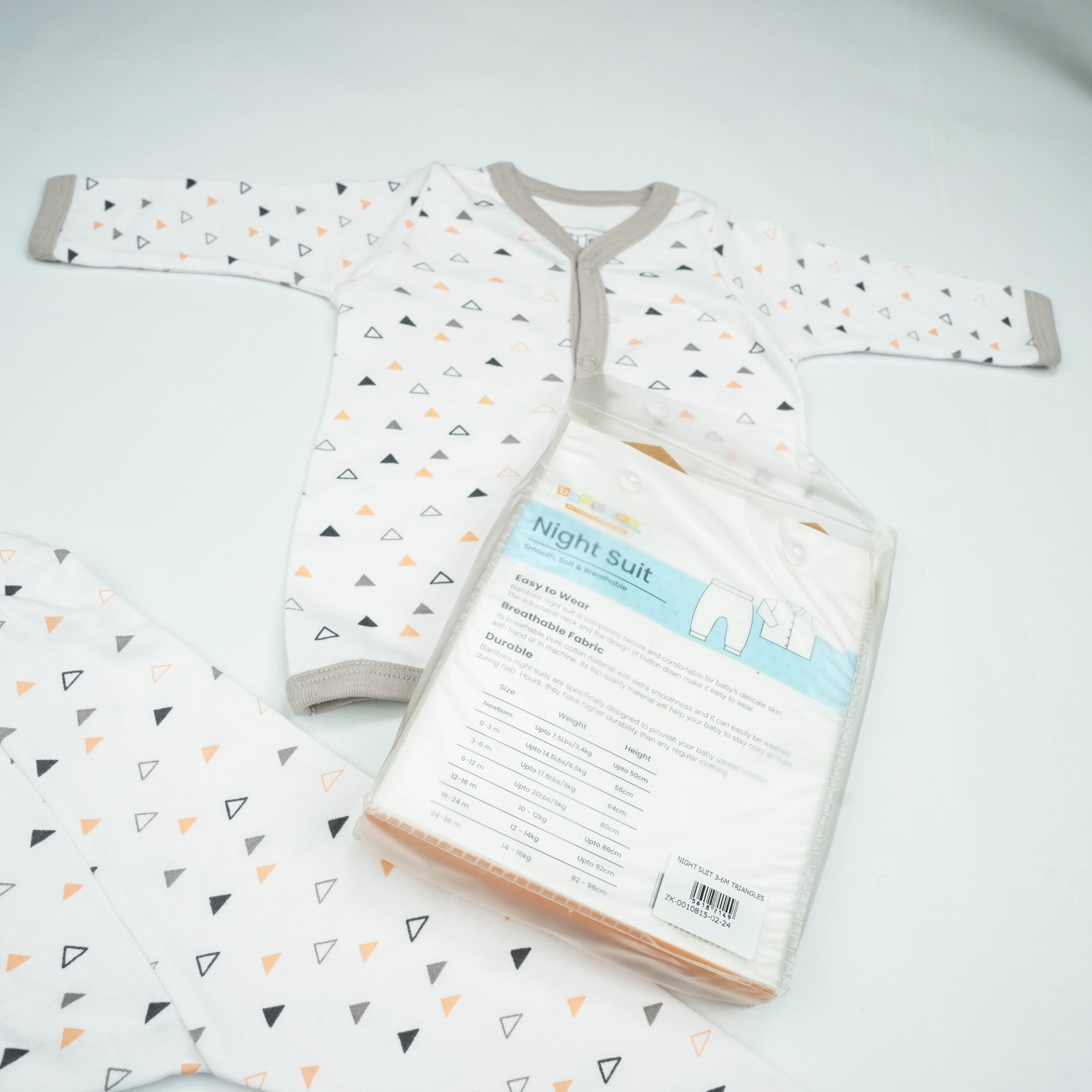 Give your baby the comfort they deserve. Order the NIGHT SUIT 3-6M TRIANGLES today!