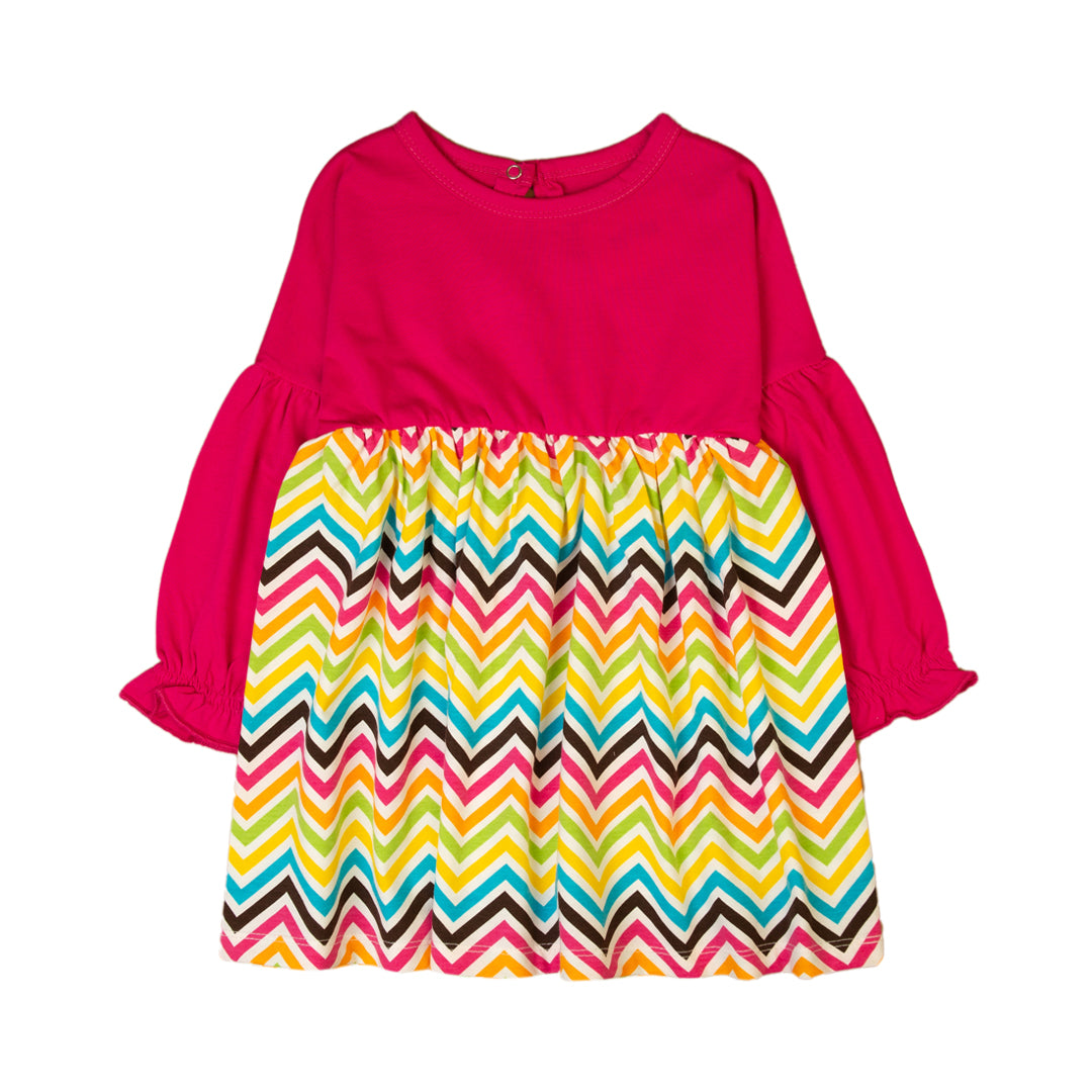 Crafted with a lovely pink hue, the skirt features a vibrant multicolored chevron design that your child will adore. Available in various sizes, this dress is perfect for toddlers and young children.