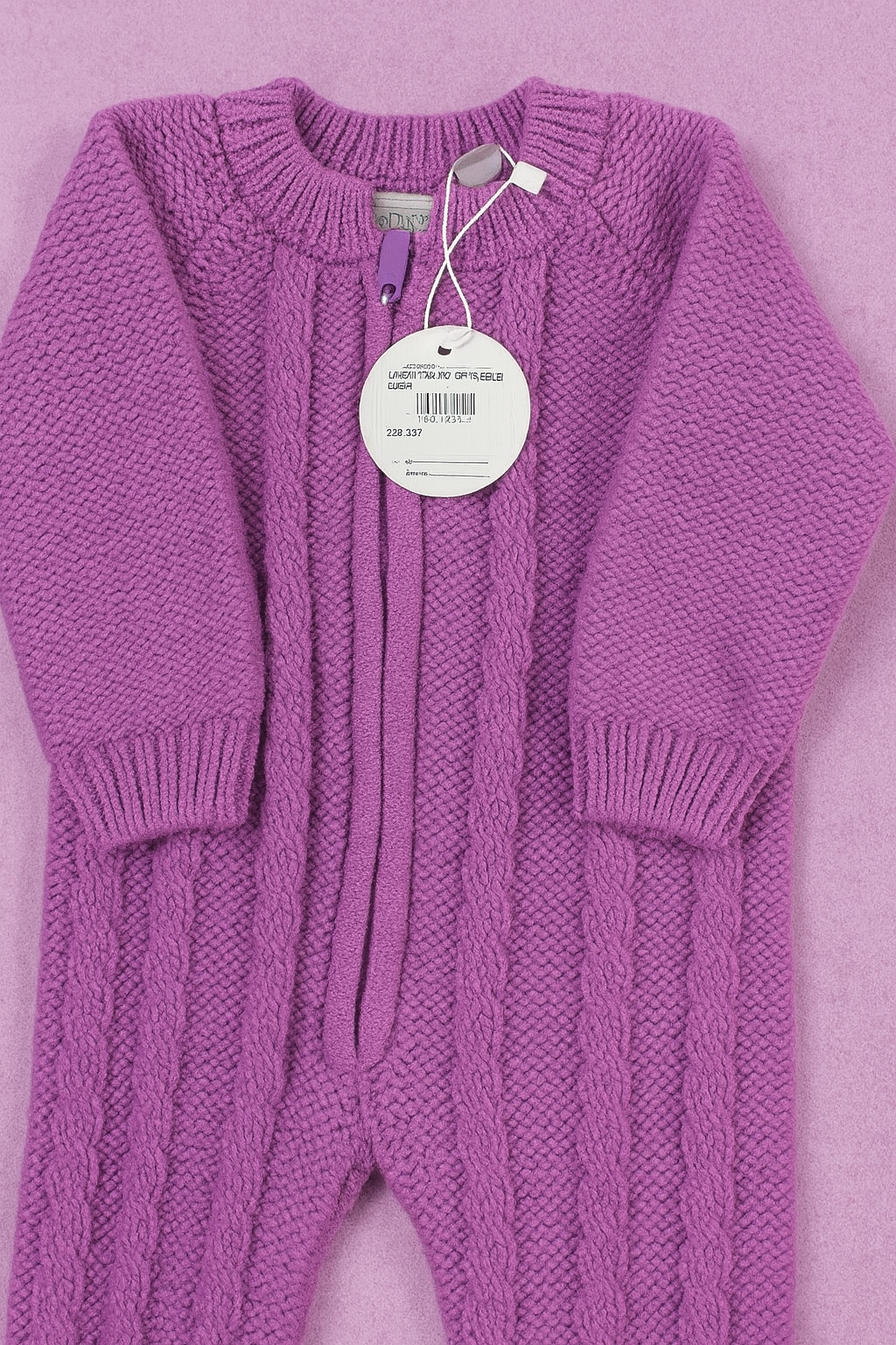 Keep your little one warm and snug in this beautifully crafted knitted romper. Designed with love and care, this piece combines softness, comfort, and style – perfect for chilly days and cozy nights.