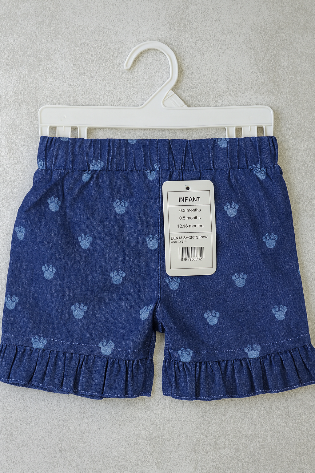 These shorts feature an adorable paw-print pattern and delicate ruffle detailing at the hem, blending playful design with a stylish finish. Perfect for everyday wear, playdates, or casual outings, they pair beautifully with tees or tops for a complete look.