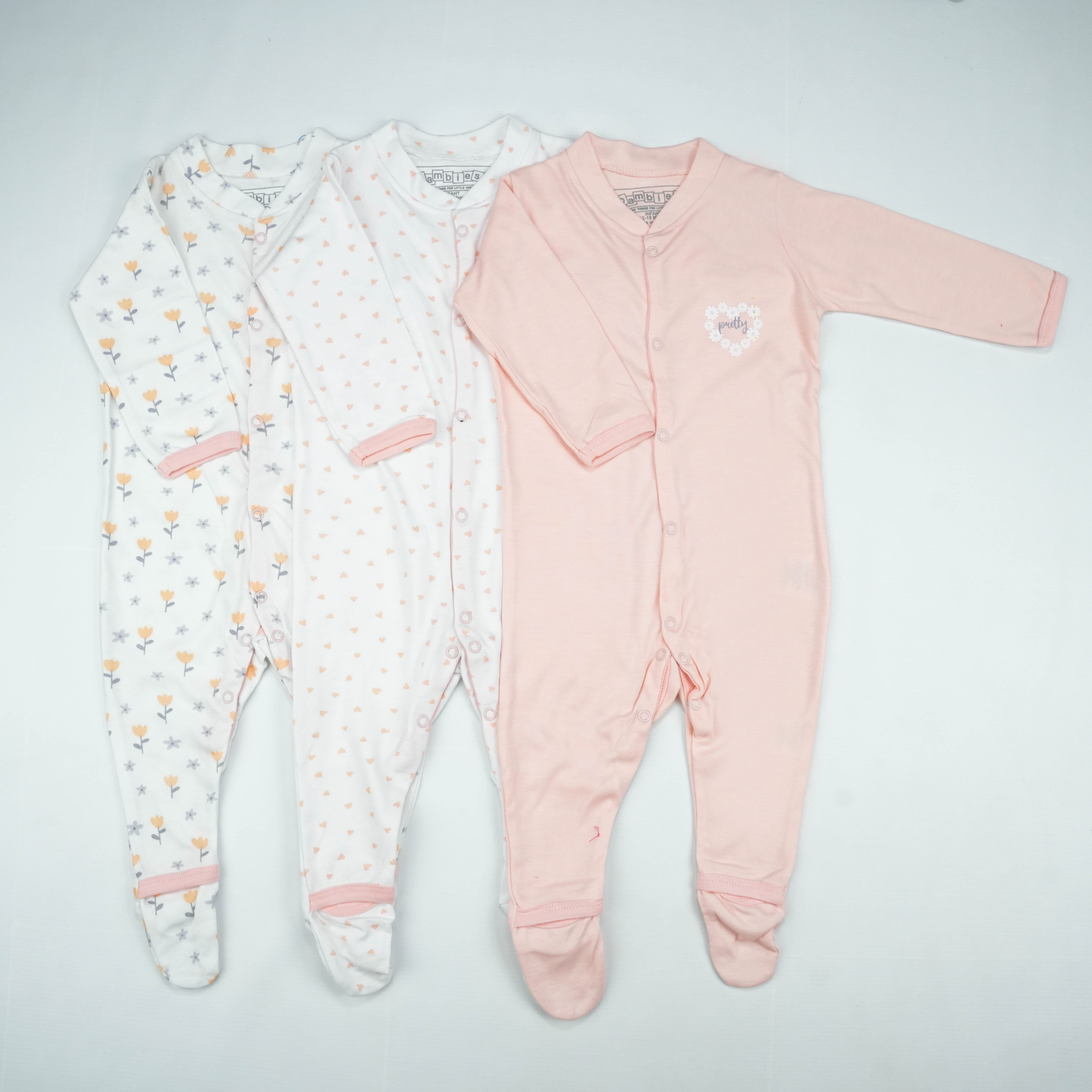 SLEEP SUIT PK3 12-18M LT PINK BLOSSOM
