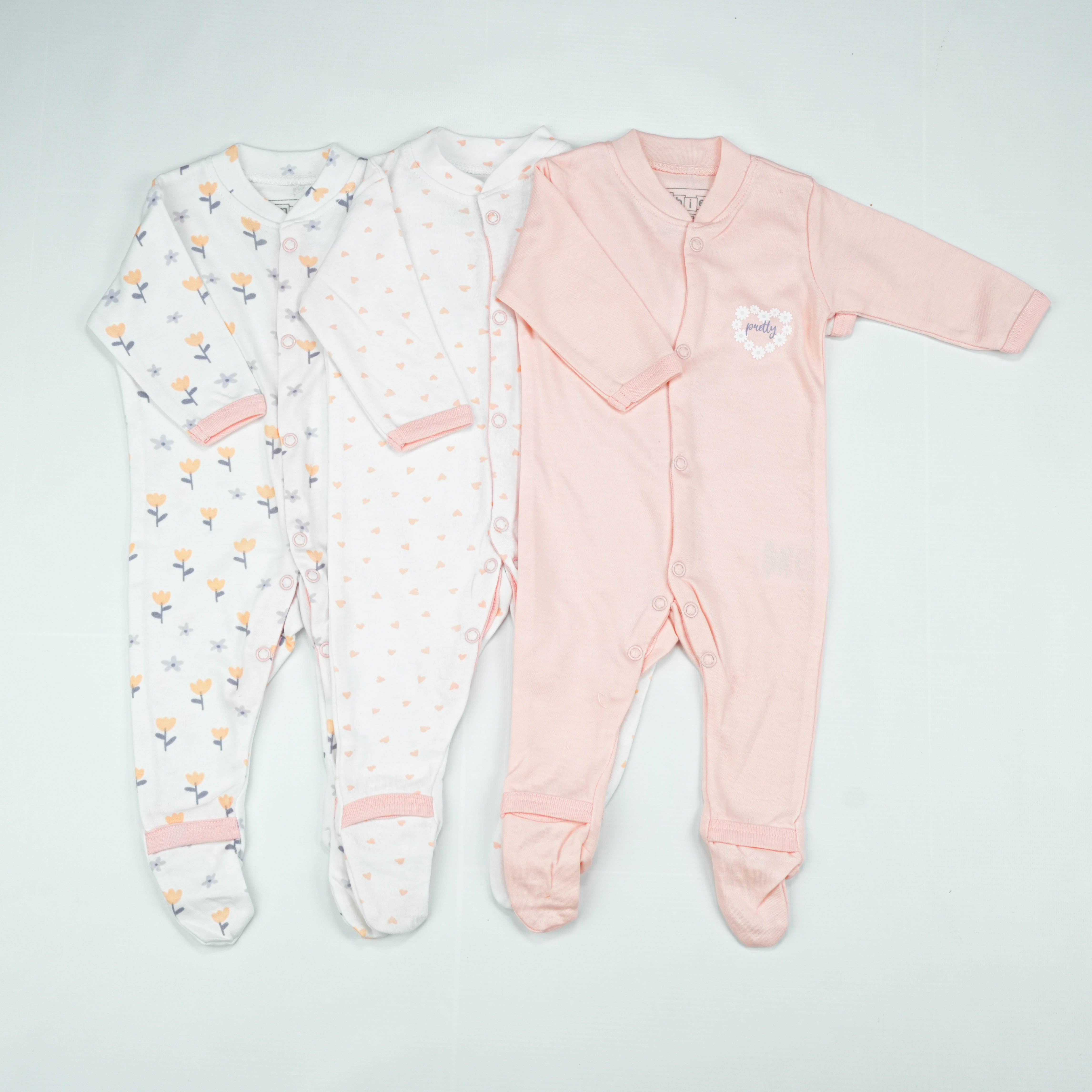 Give your baby the gift of comfort with the SLEEP SUIT PK3 NB LT PINK BLOSSOM. Shop now and let your little one sleep in style!
