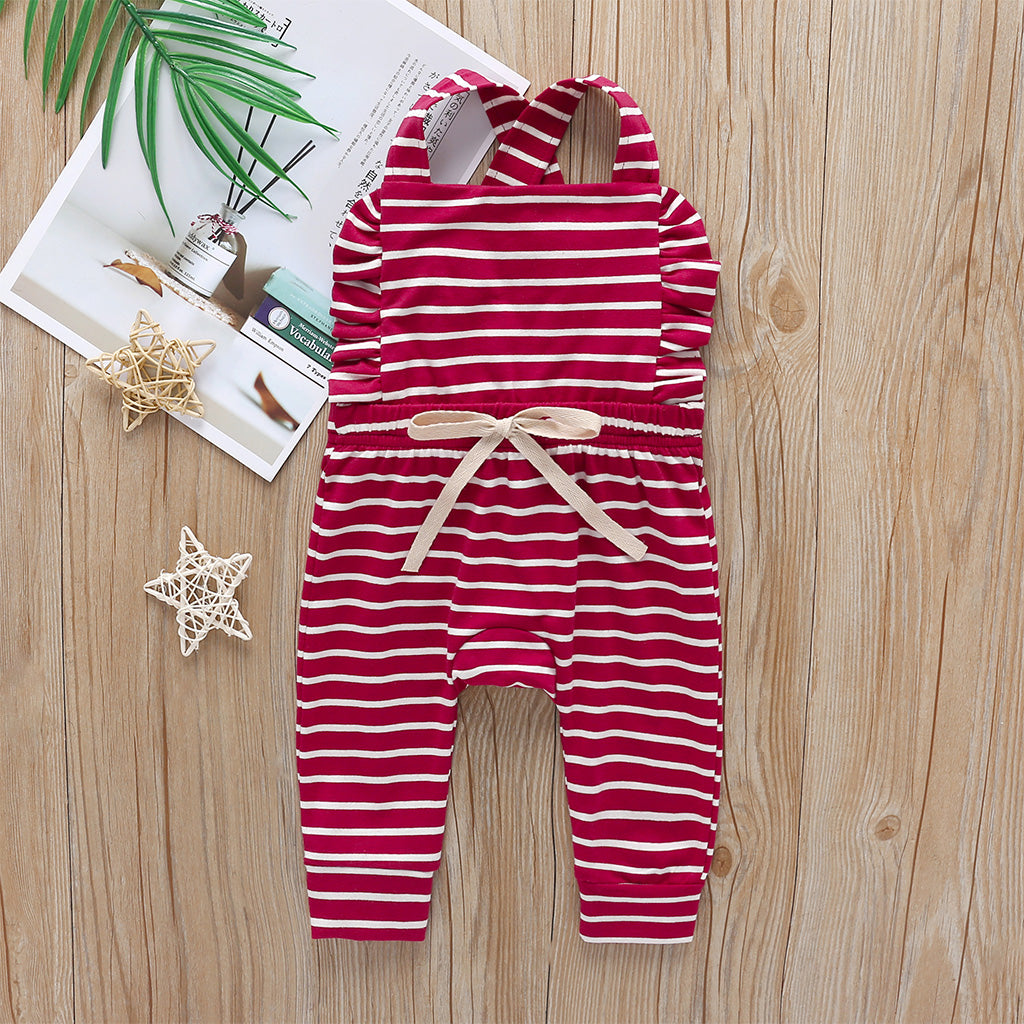 Sweet and charming, this ruffle decor jumpsuit is an adorable addition to your baby’s wardrobe.