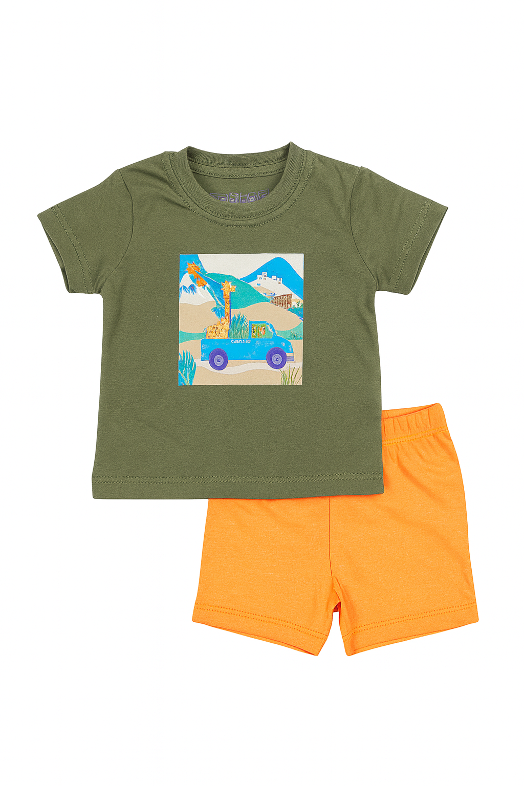 Playful 2-piece infant suit featuring an animal tour design. Perfect for fun and comfort.