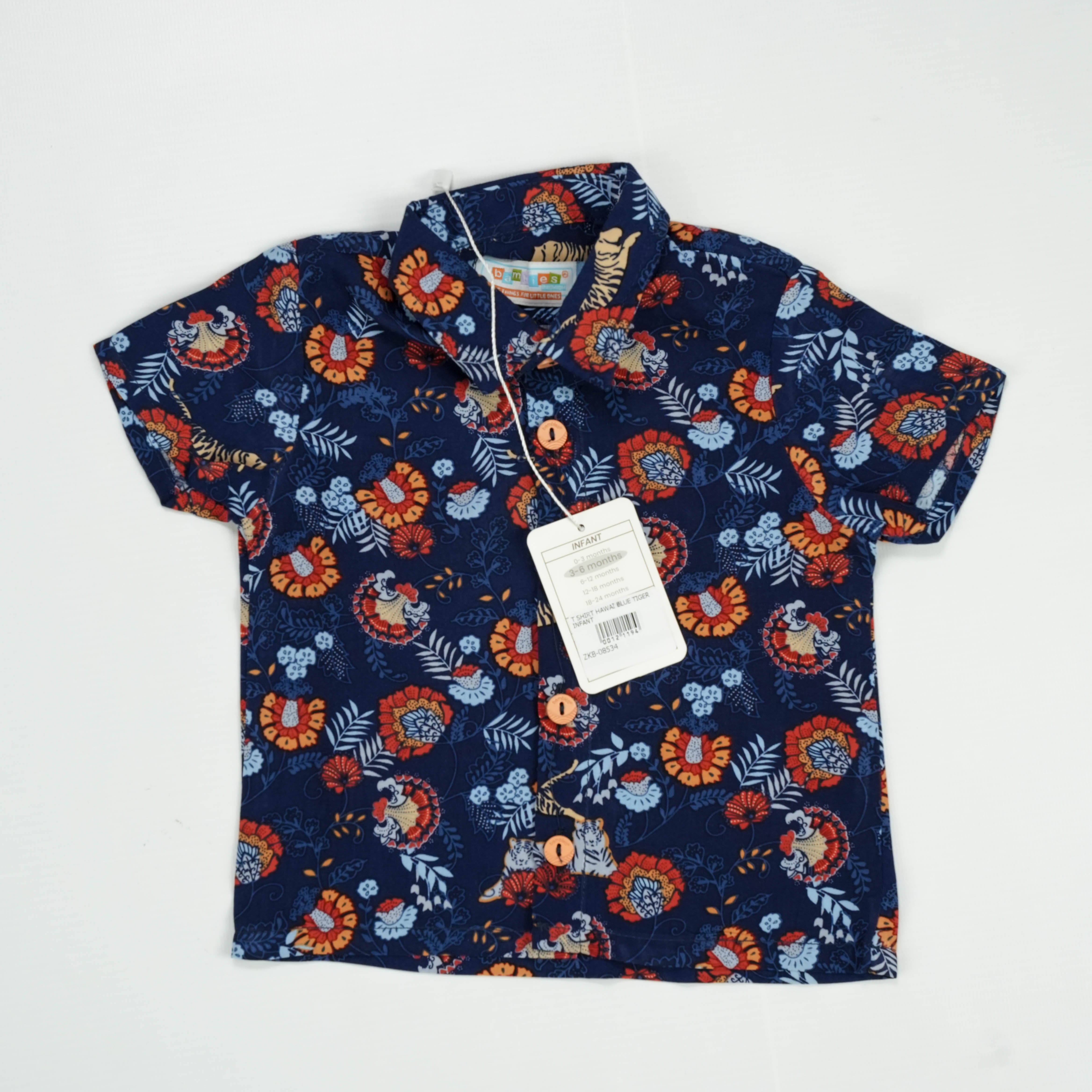 Introducing the T SHIRT HAWAI BLUE TIGER INFANT, a perfect blend of style and comfort for your little one. This vibrant shirt features an adorable tiger print that your baby will love!