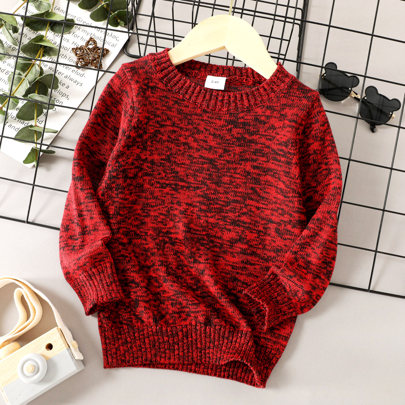 Toddler Boy/Girl Solid Color Round-collar Knit Sweater